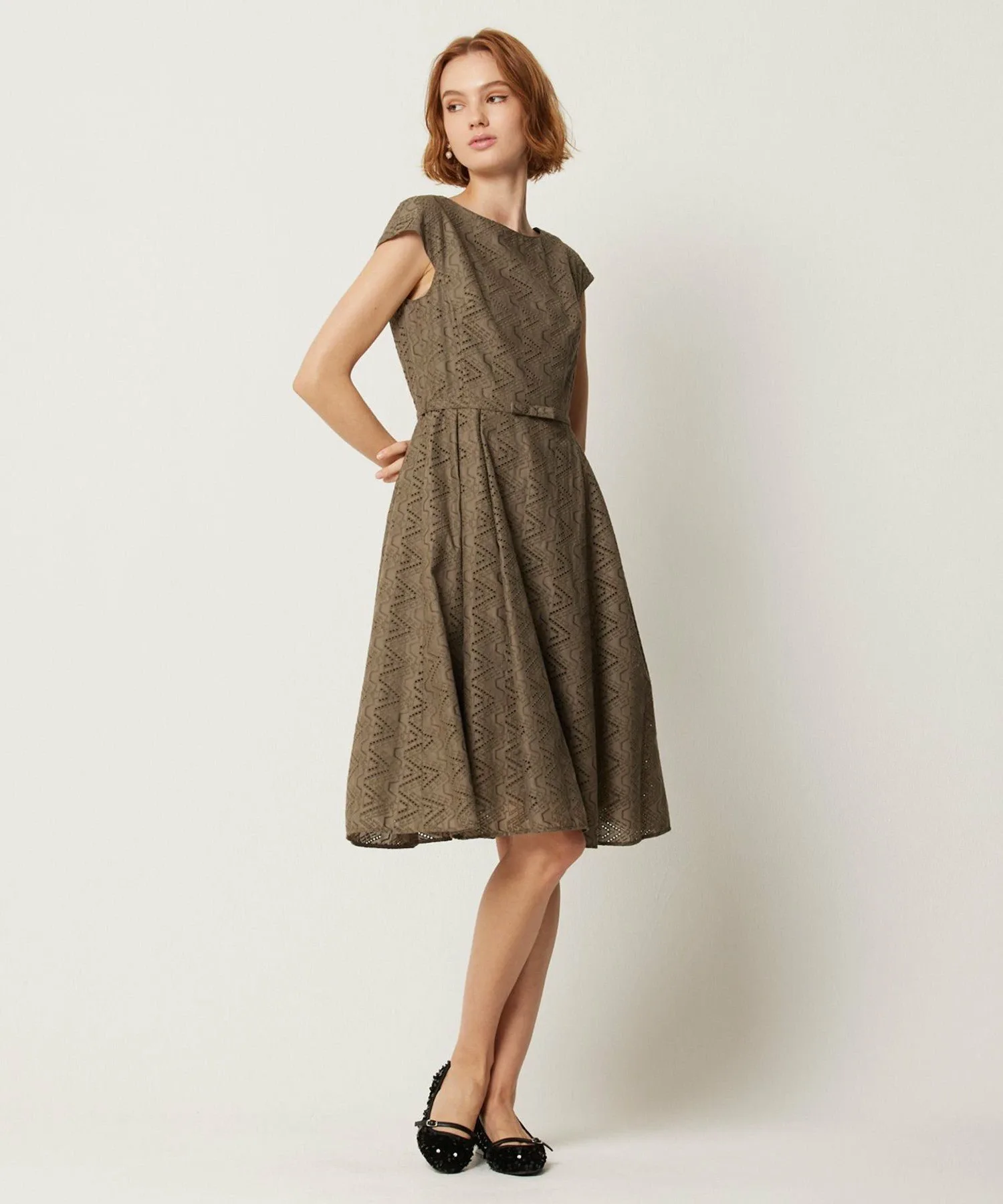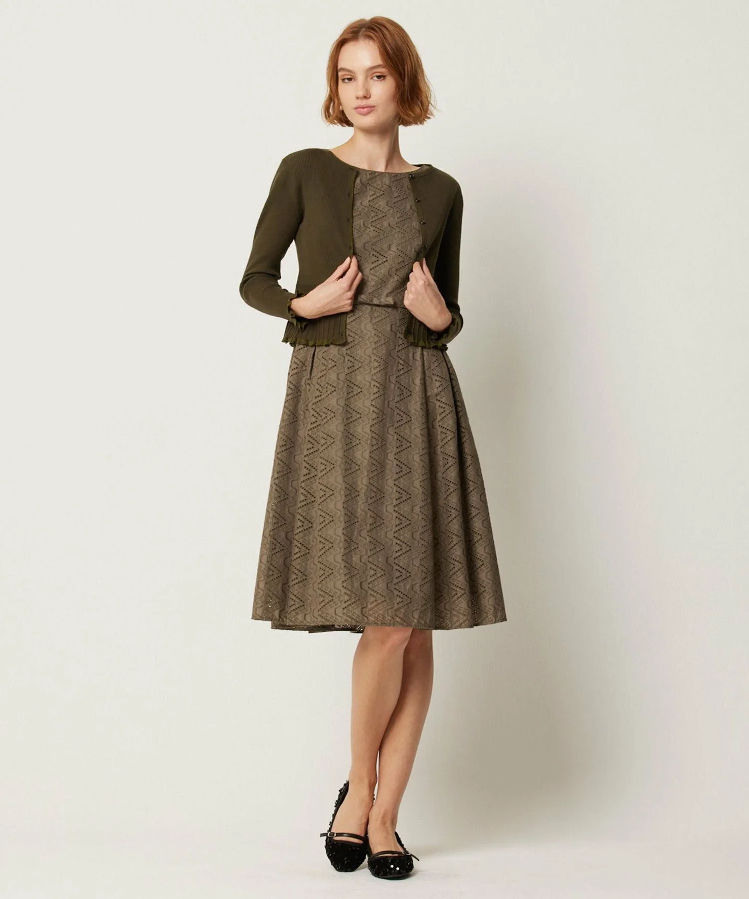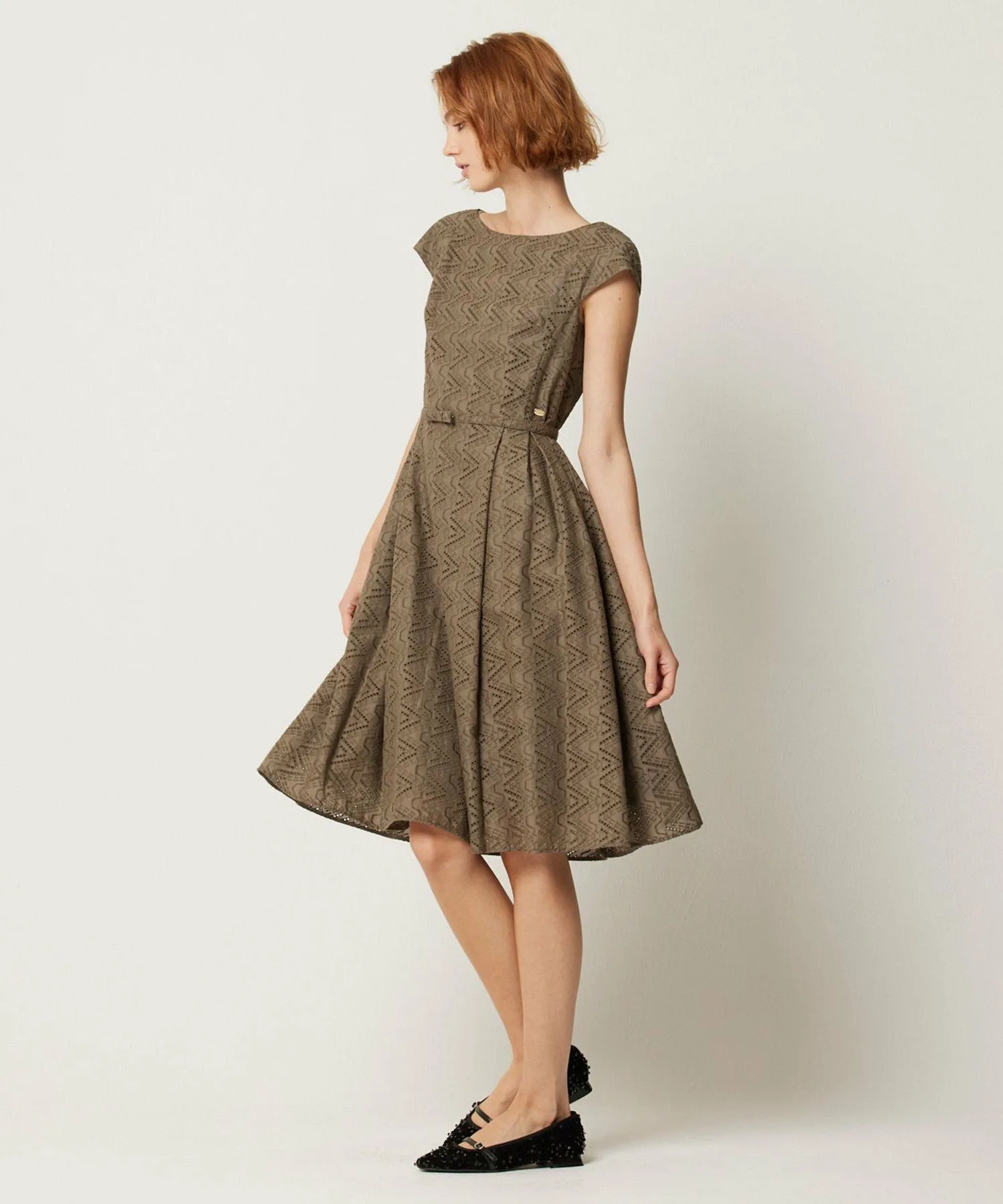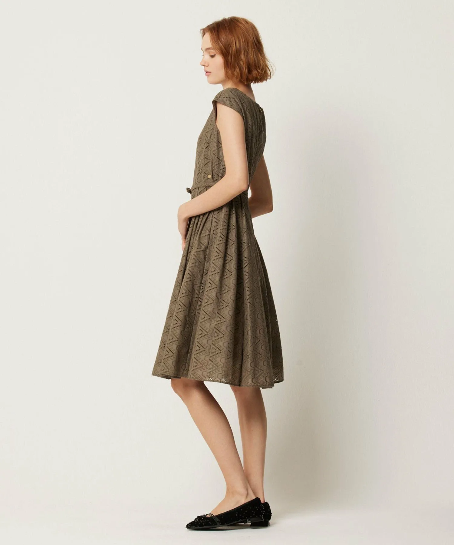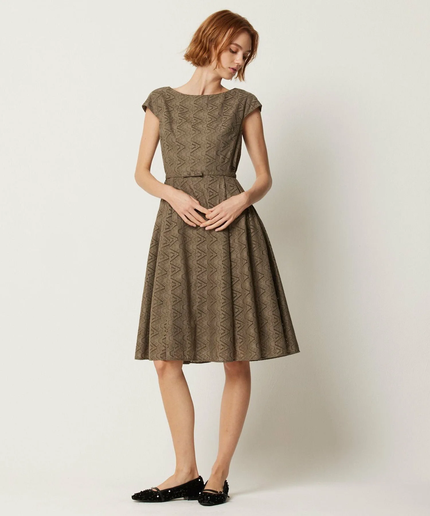 Вырез-лодочка и рукава, закрывающие предплечья, добавляют элегантности и очарования. Ленточный пояс из того же материала регулируется в двух положениях с помощью кнопок.