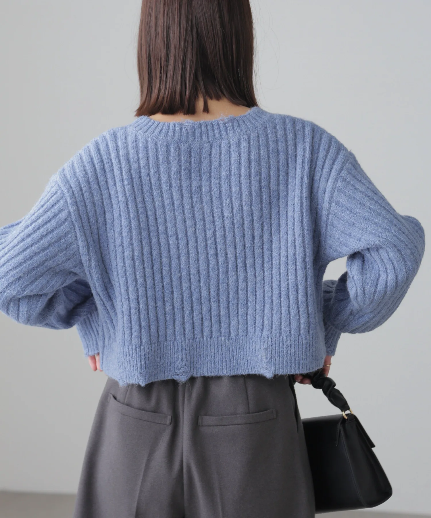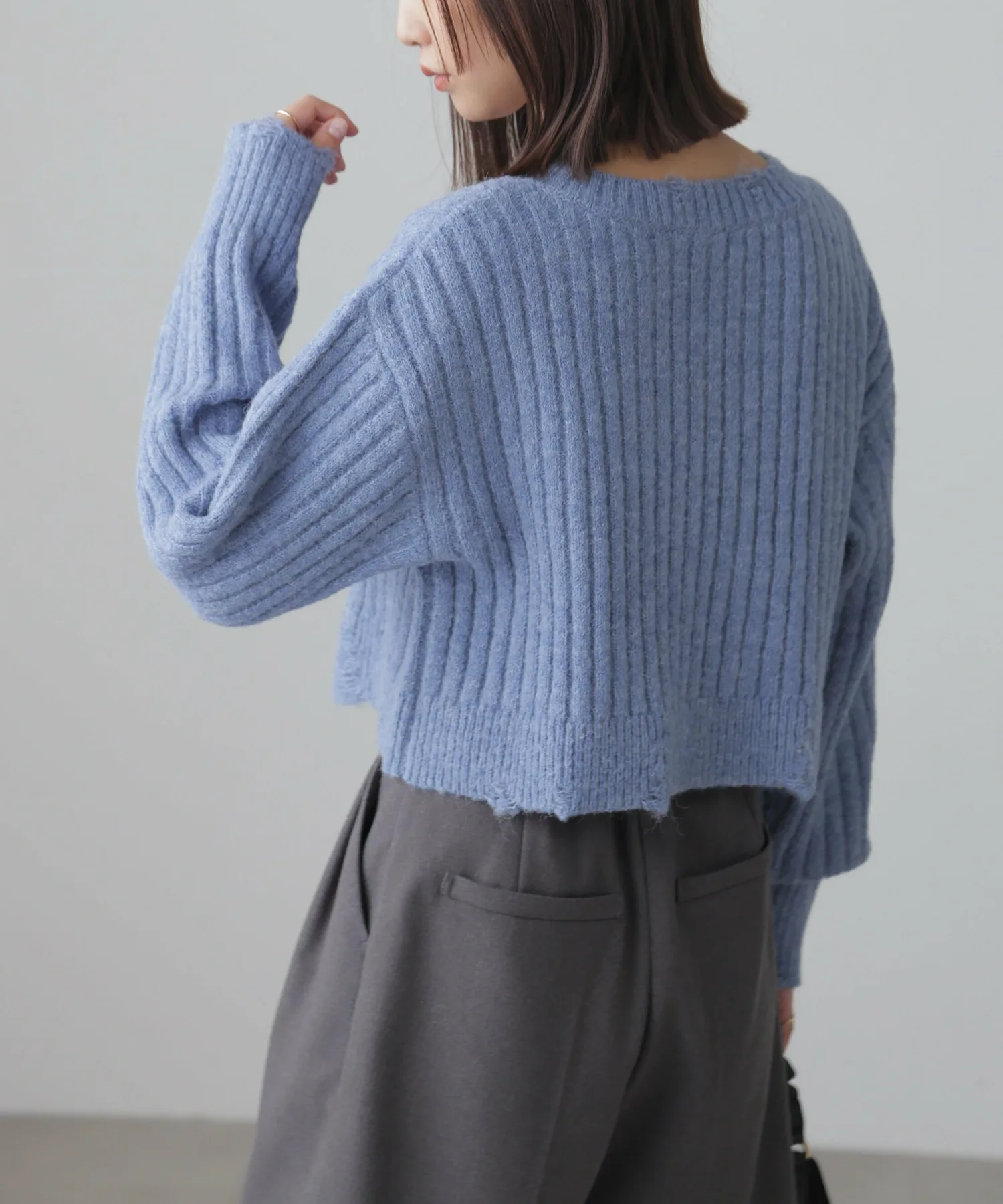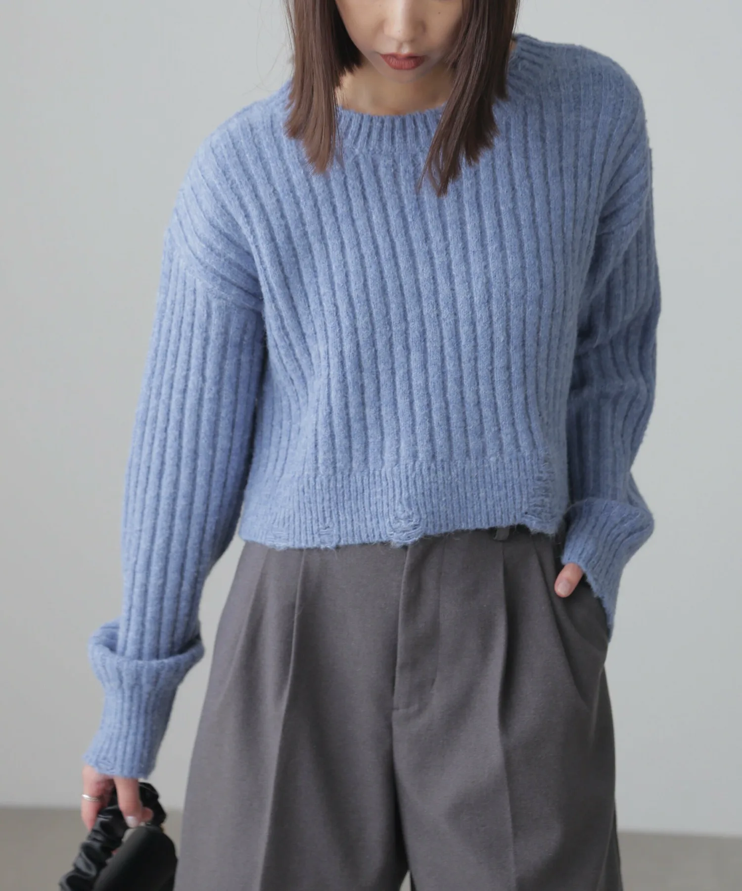 Этот модный трикотаж отличается теплой, объемной широкой ребристой текстурой и свободным, слегка потертым дизайном. Его короткая длина позволяет легко сочетать его с любыми брюками или юбками. Его можно носить как самостоятельно, так и в сочетании с прозрачной внутренней подкладкой или рубашкой. Идеально подходит для изысканного, сладко-пряного образа: сочетайте его с многоярусной мини-юбкой из кружева, юбкой со сборками или узкой юбкой-запахом с сапогами для создания утонченного образа в стиле Y2K или корейского стиля. Эффект потертости достигается не путем распускания и распускания нитей, а путем перекрещивания петель и переплетения уточных нитей. Хотя перекрещенные нити могут цепляться за что-либо, они вряд ли распустятся, поэтому наслаждайтесь свободным кроем.
