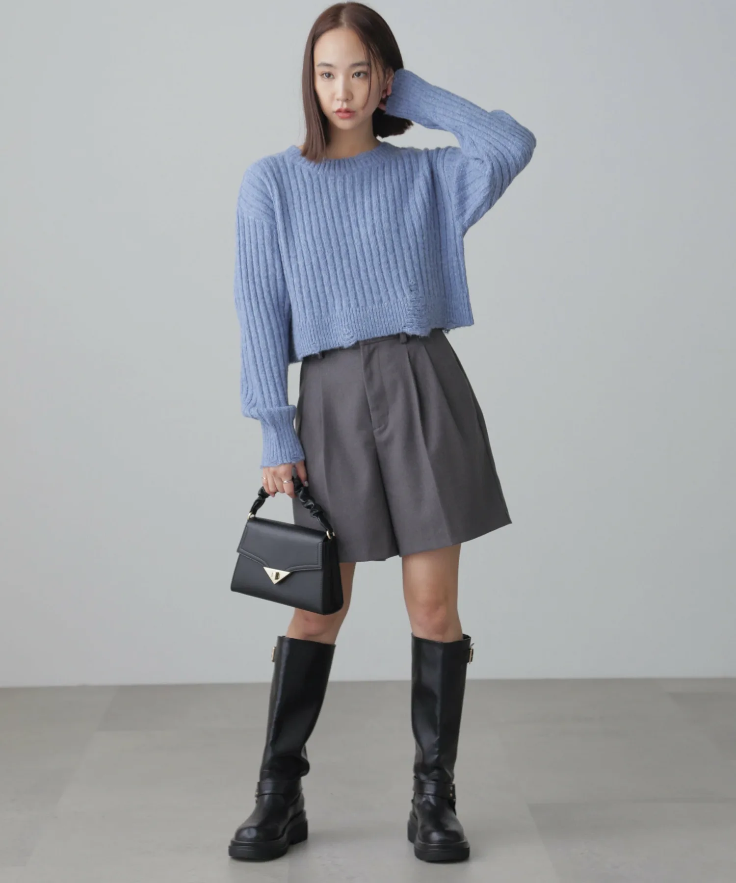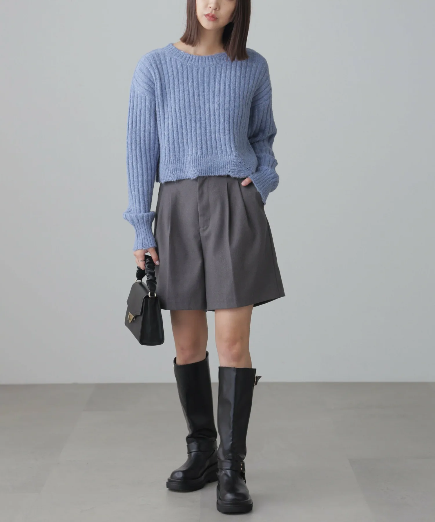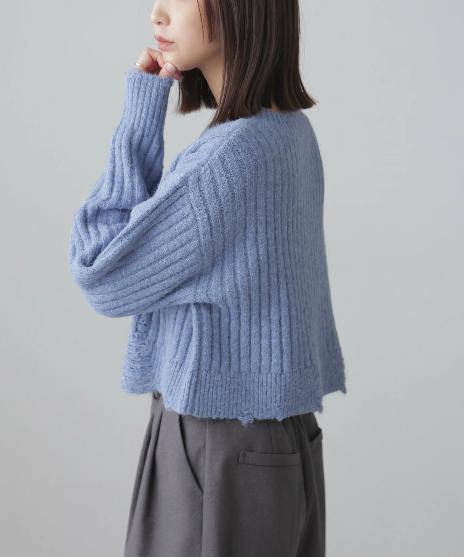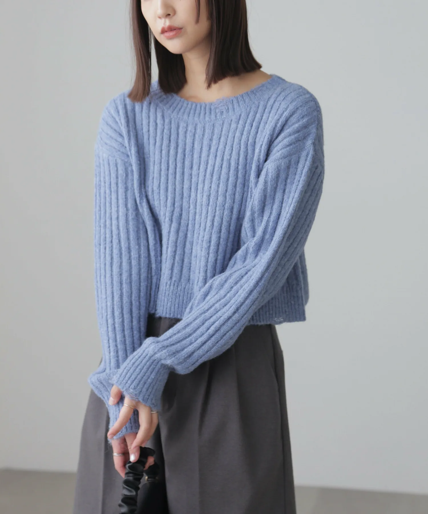 Этот модный трикотаж отличается теплой, объемной широкой ребристой текстурой и свободным, слегка потертым дизайном. Его короткая длина позволяет легко сочетать его с любыми брюками или юбками. Его можно носить как самостоятельно, так и в сочетании с прозрачной внутренней подкладкой или рубашкой. Идеально подходит для изысканного, сладко-пряного образа: сочетайте его с многоярусной мини-юбкой из кружева, юбкой со сборками или узкой юбкой-запахом с сапогами для создания утонченного образа в стиле Y2K или корейского стиля. Эффект потертости достигается не путем распускания и распускания нитей, а путем перекрещивания петель и переплетения уточных нитей. Хотя перекрещенные нити могут цепляться за что-либо, они вряд ли распустятся, поэтому наслаждайтесь свободным кроем.
