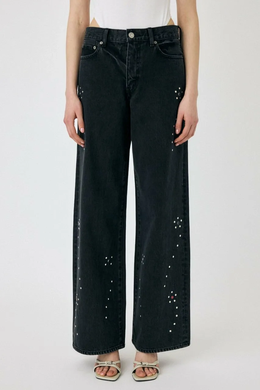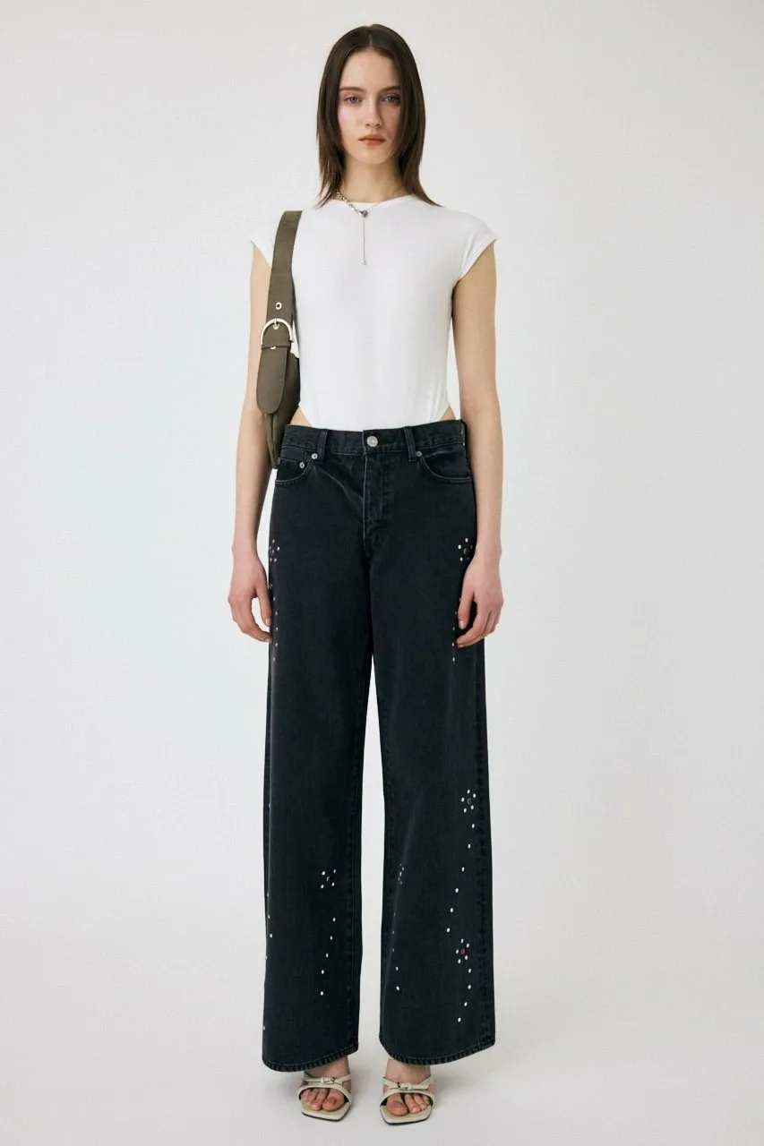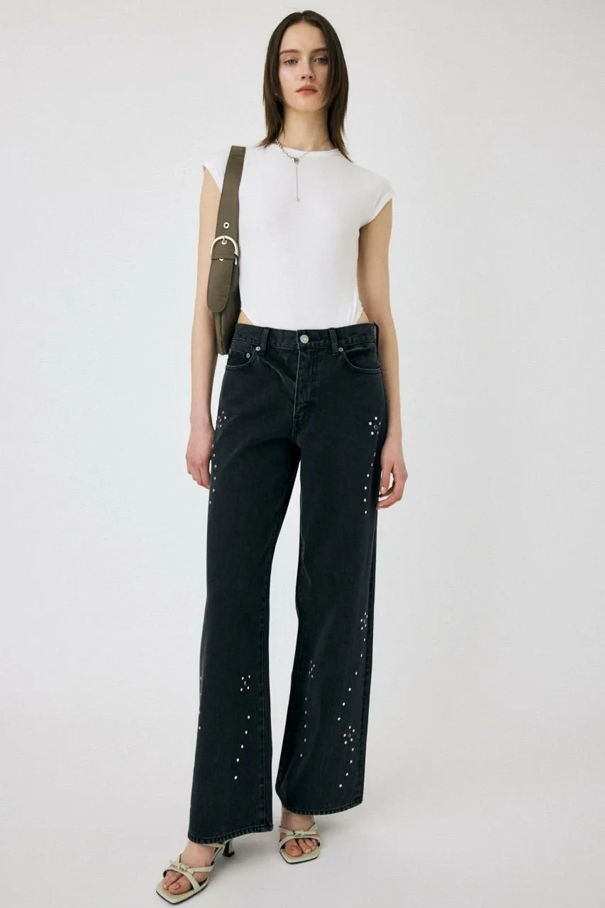 Джинсы, украшенные цветными заклепками и стразами, вдохновленными цветами.