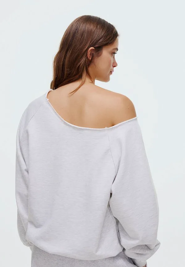 Свитшот с вырезом «бардо» Bershka, Dark Grey