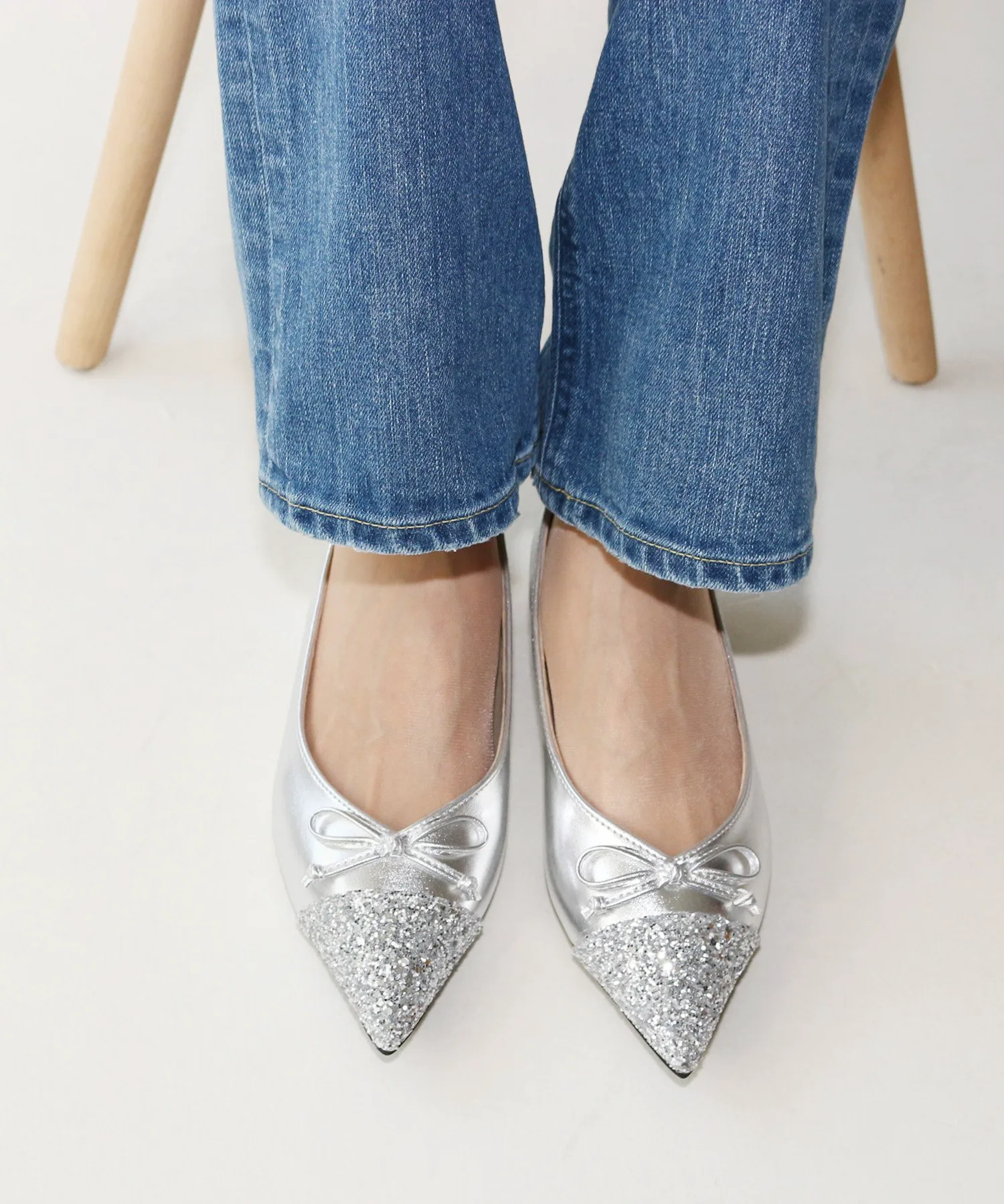 Представляем балетки Fin с блестящим мыском, отличающиеся чистым заостренным носком и V-образным вырезом для создания стройного, изящного образа. Глубокий V-образный вырез создает четкий, но в то же время теплый и элегантный вид. Каблук высотой 2,3 см и линии выреза создают сбалансированный силуэт, придавая образу изысканность. Сверкающие блестки на мыске делают их идеальными для весенних и летних нарядов.