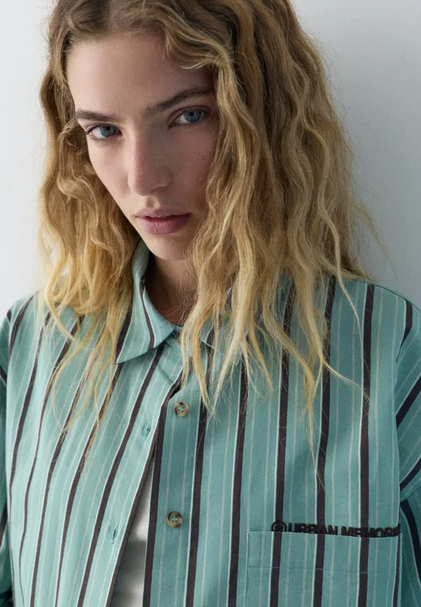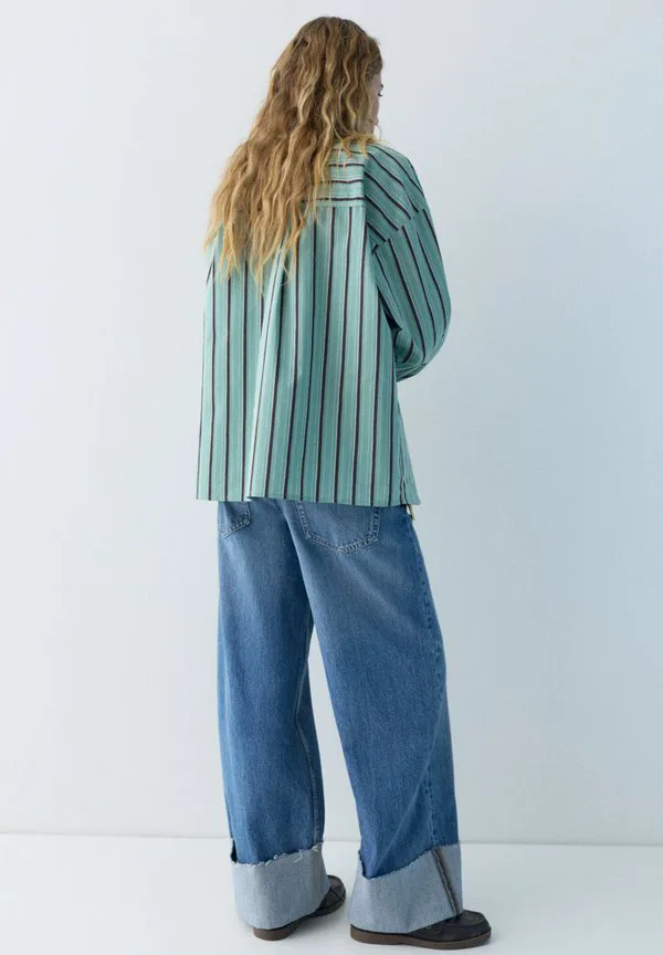 Полосатая блузка с карманами и пуговицами Pull&Bear, Turquoise