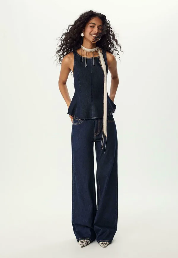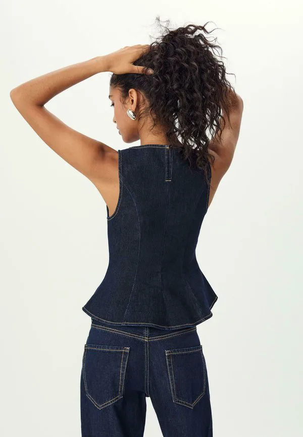 Блузка без рукавов с баской Stradivarius, Used Denim 4 167₽