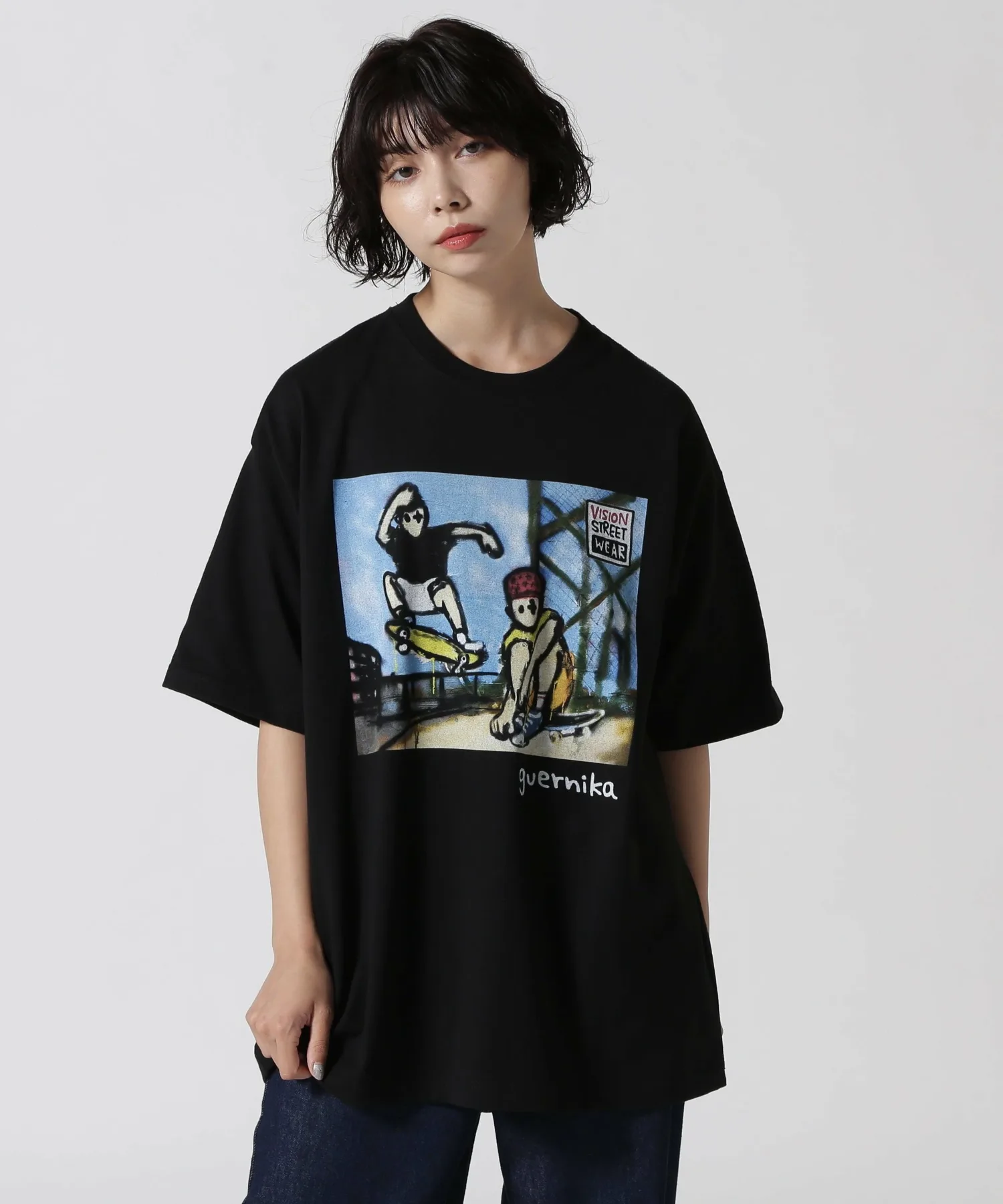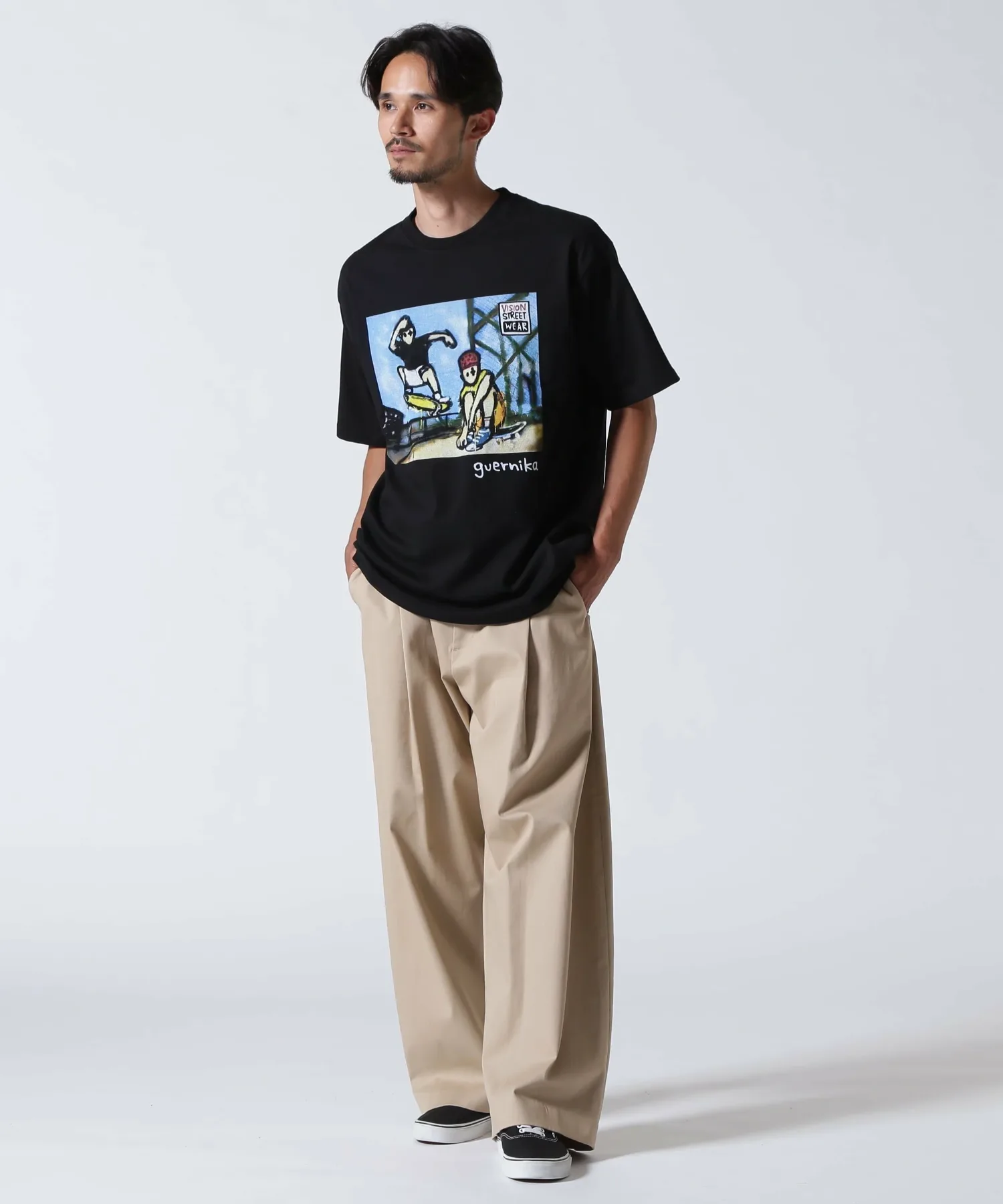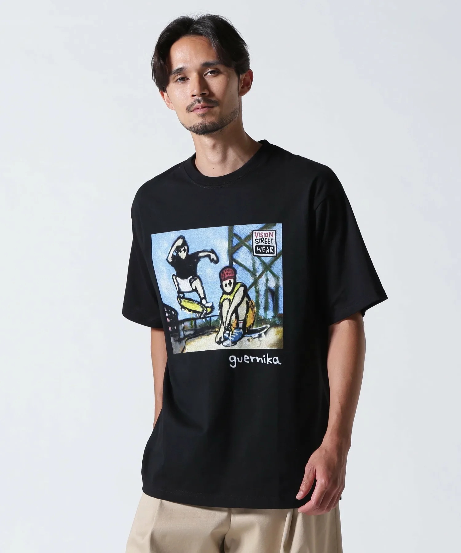 Особая коллаборация между калифорнийским скейтборд-брендом VISION STREET WEAR из округа Ориндж и брендом одежды guernika художника Инуи Шиничиро.