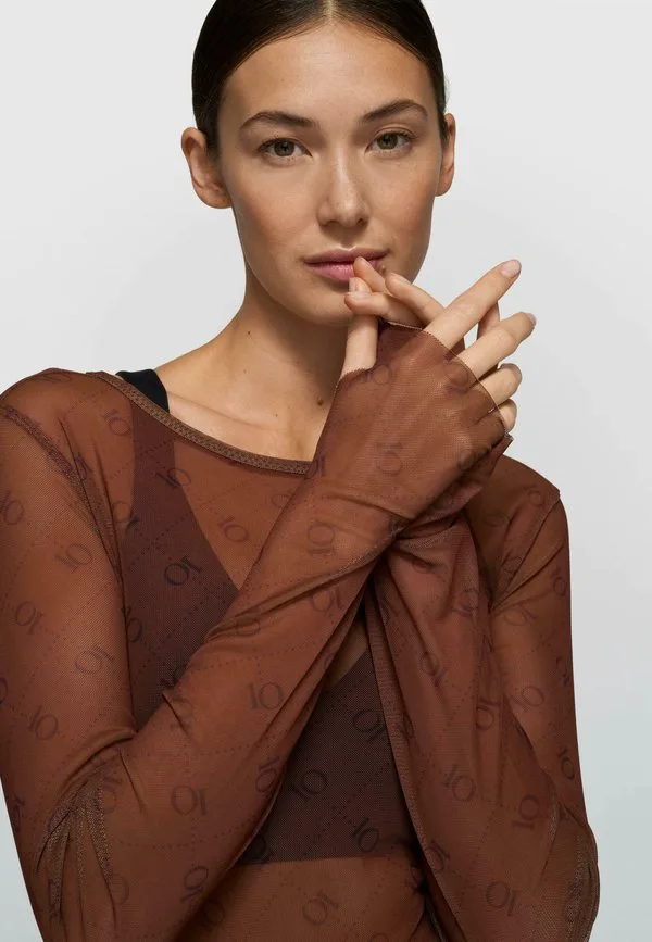 Топ с длинными рукавами и монограммой 10Days, Dark Truffle