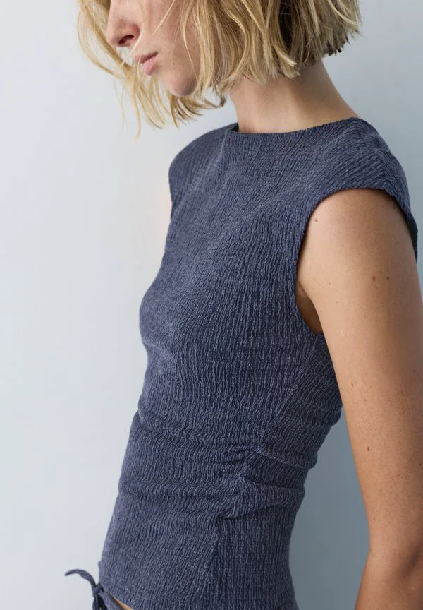Блузка из крепа Pull&Bear, Dark-Blue Denim