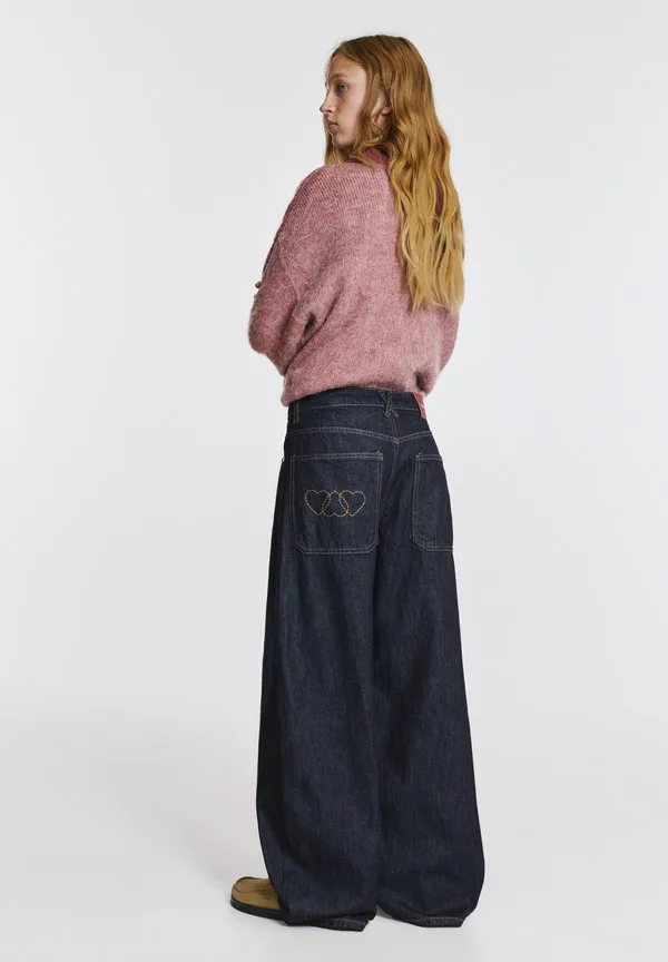Джинсы-Клеш с сердечками Pull&Bear, Dark-Blue Denim