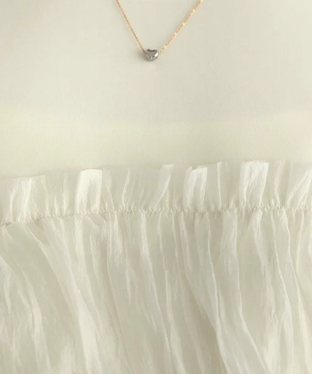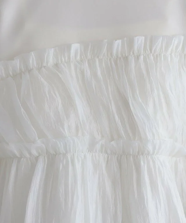 Сочетание различных материалов создает привлекательный дизайн. Мягкая органза подчеркивает вашу женственность, а силуэт с баской помогает скрыть недостатки фигуры.