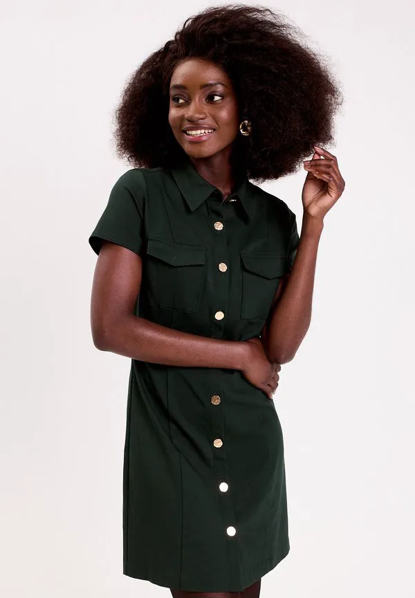 Платье-Рубашка gerades mit knöpfen Cache Cache, Vert Foncé