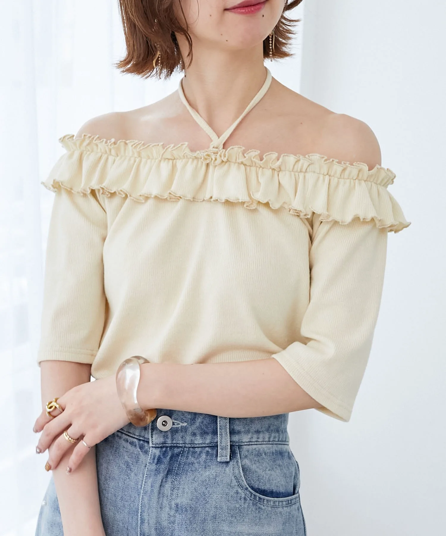 Он идеально сочетается с любыми брюками, включая модные в этом сезоне юбки с оборками и джинсы. ◎