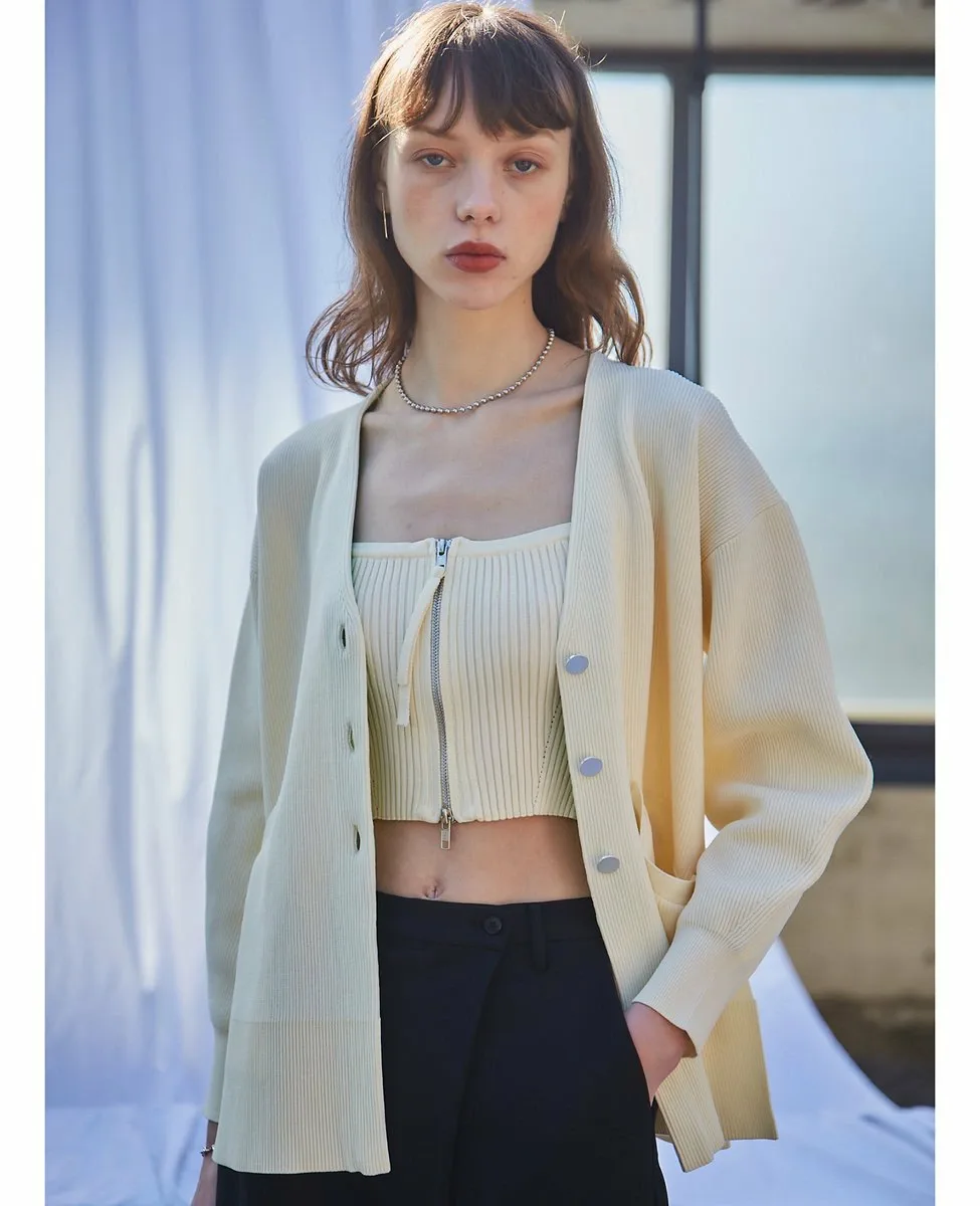 Бюстье в рубчик, изготовленное из того же материала, что и кардиган.