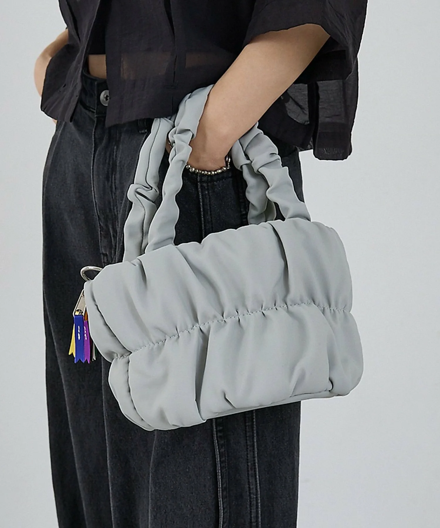 Эта симпатичная, округлая сумка-тоут на завязках имеет широкие складки на корпусе и ручках, а мягкая подкладка создает нежный и изящный силуэт. Изготовленная из переработанного полиэстера с саржевой текстурой, эта легкая и экологичная сумка идеально подходит для повседневного использования. Застежка на завязках имеет цветовую маркировку. Затяните завязки внутрь для создания обтекаемого стиля сумки-тоут, что позволяет использовать ее двумя способами. Спереди расположен удобный небольшой карман, идеально подходящий для хранения мелких предметов, таких как беспроводные наушники и помада. Скрытый магнит позволяет сумке закрываться автоматически. Входящий в комплект глянцевый плечевой ремень позволяет носить сумку на плече или через плечо, что идеально подходит для дней, когда вы носите много багажа. Эта универсальная повседневная сумка сочетает в себе очарование и функциональность. Меняйте форму в соответствии со своим стилем и добавьте немного веселья в свою повседневную жизнь.