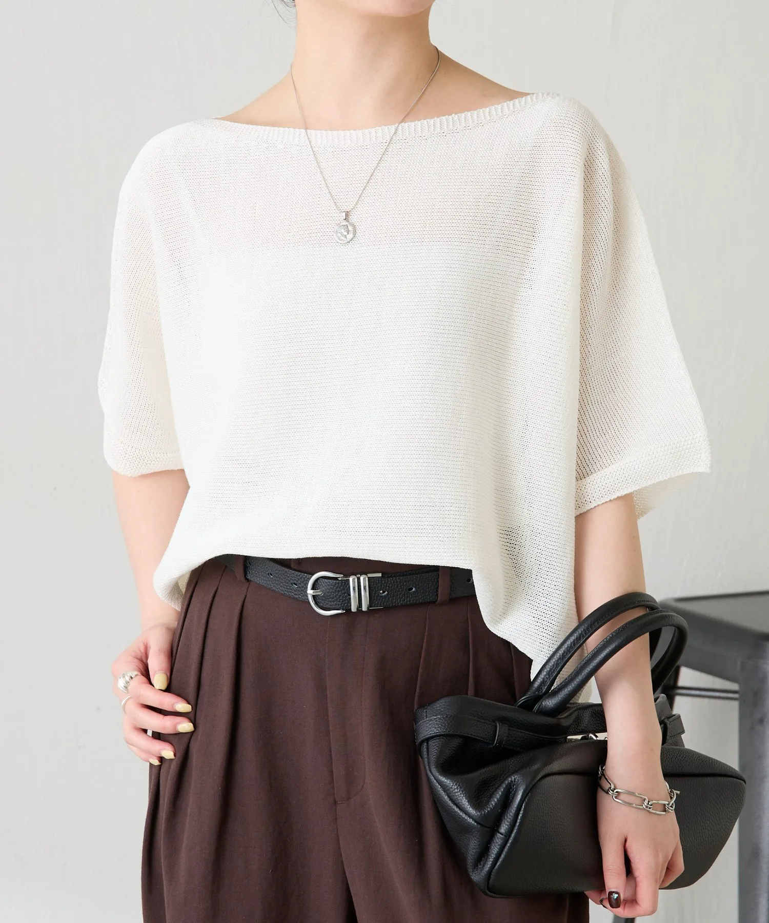 - Вырез-лодочка создает аккуратный образ вокруг лица. Также можно носить как платье на одно плечо.
