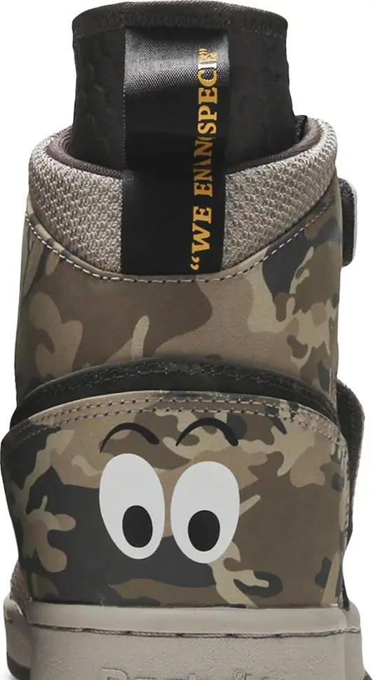 USCM Модель Bug x Reebok Alien Stomper '40th Anniversary' черпает вдохновение из классического научно-фантастического фильма Джеймса Кэмерона 1986 года «Чужие». глаза на каблуке правого ботинка — намек на бронежилет рядового Уильяма Хадсона. Остальная часть верха изготовлена из баллистического текстиля и оснащена широким ремешком в средней части стопы, украшенным двойным логотипом Reebok и Weyland-Yutani.