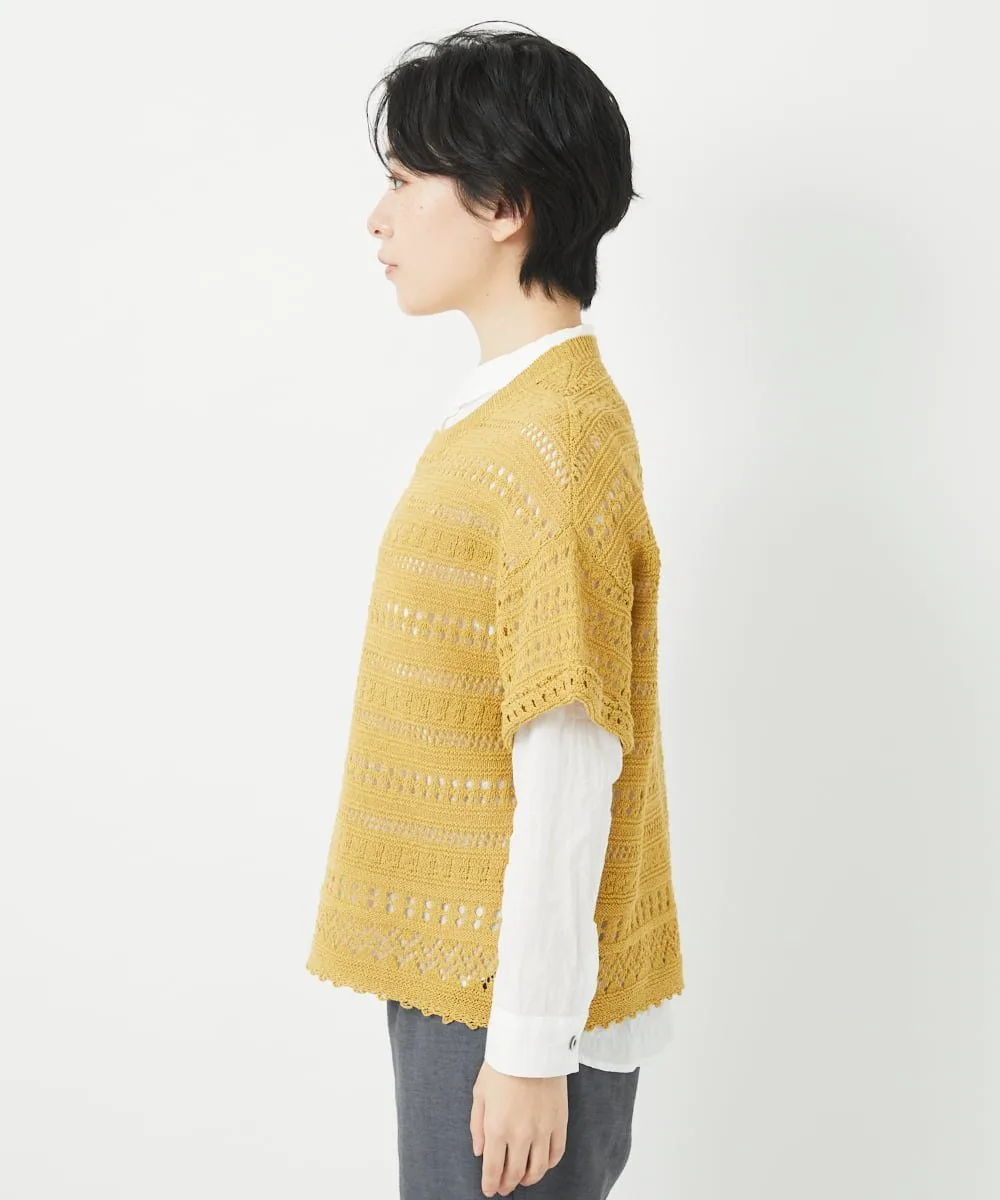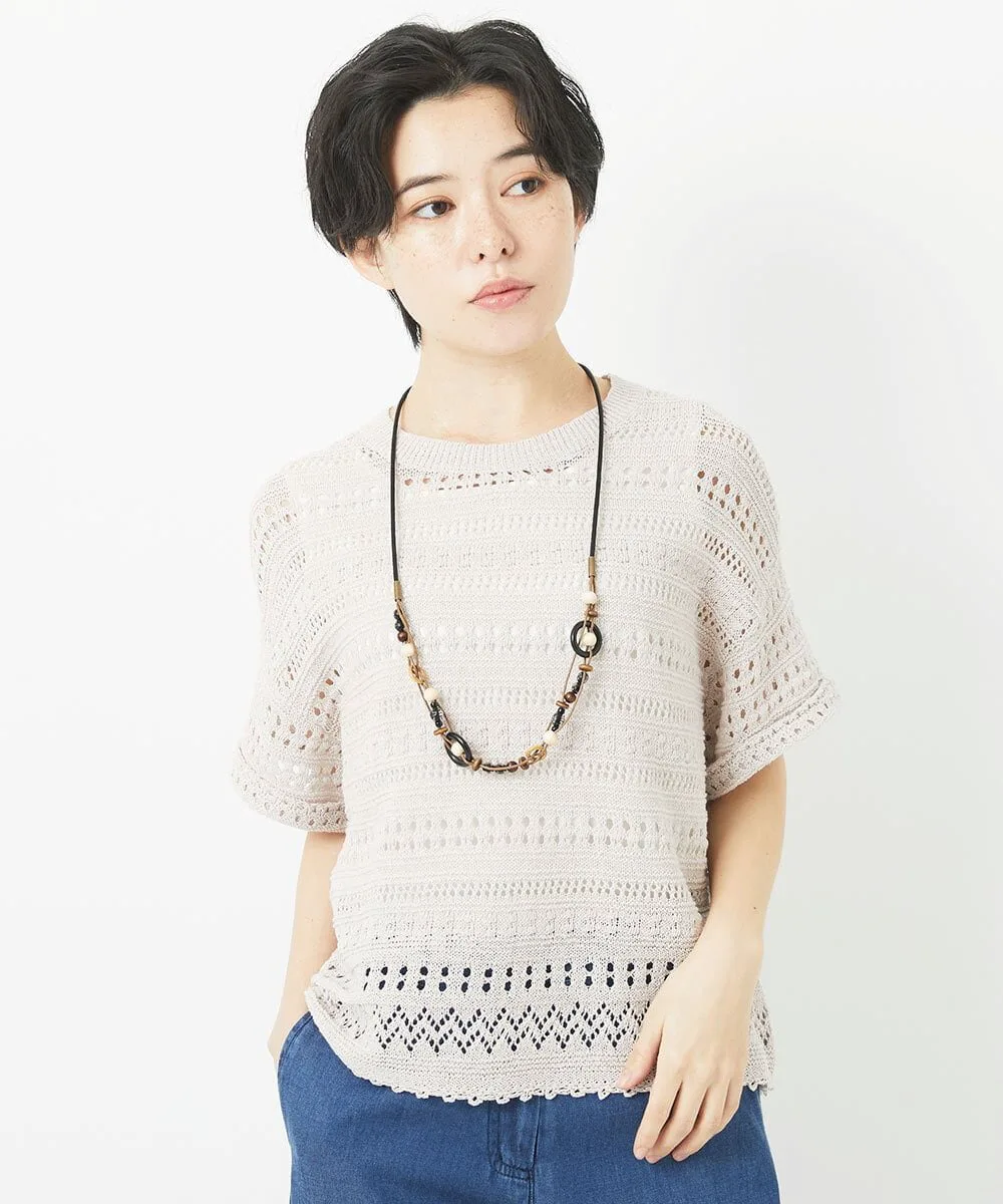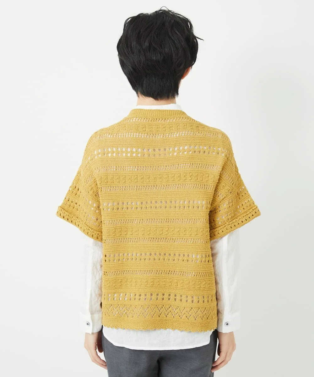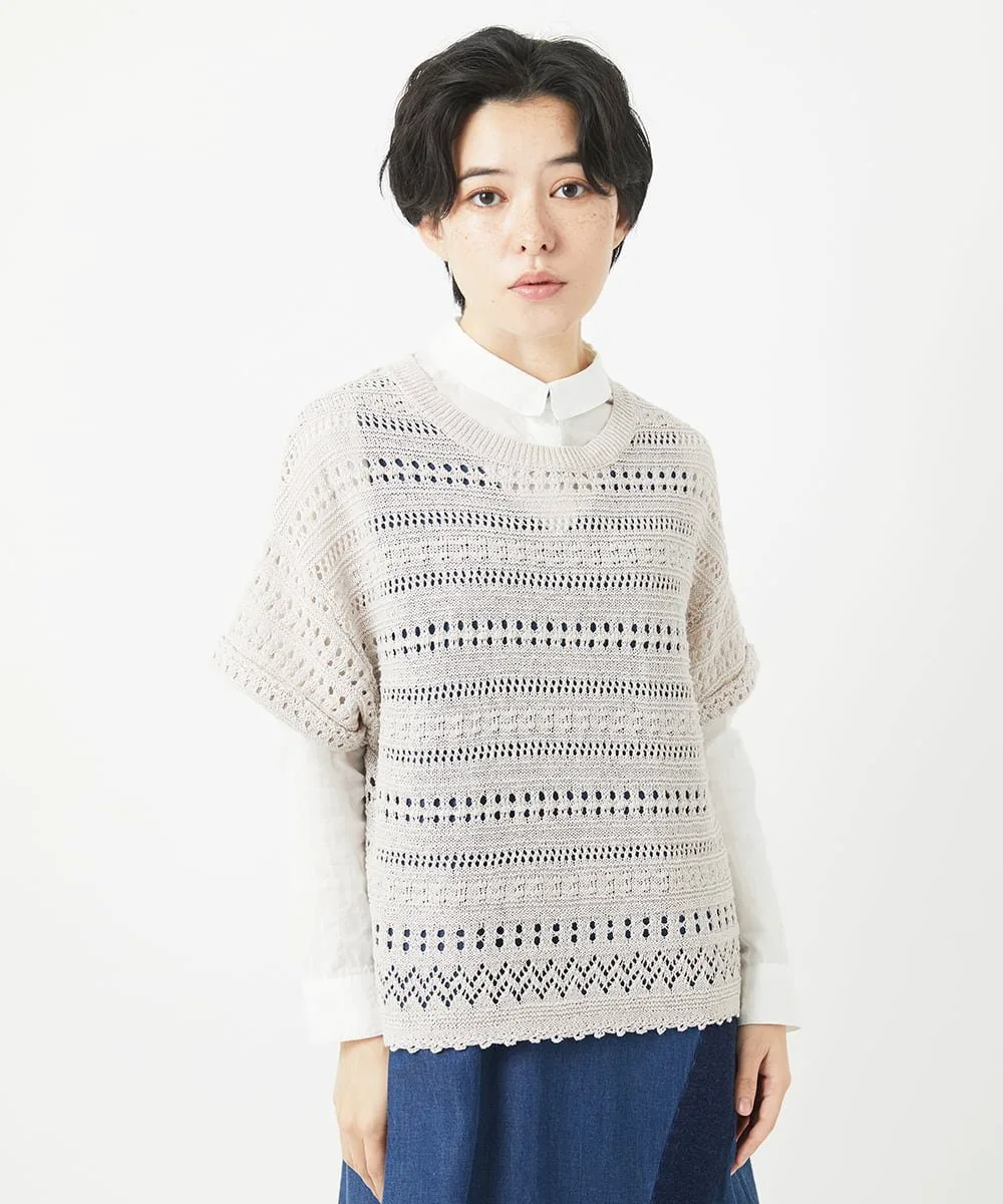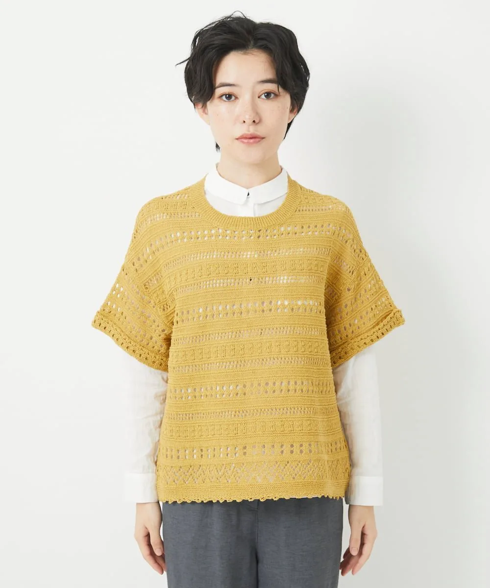 Пуловер из 100% хлопка, связанный крючком, с приятной, освежающей текстурой.