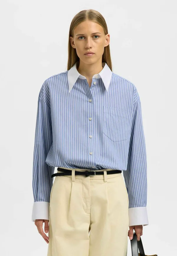 Блузка langarm на пуговицах Selected, Dusty Blue