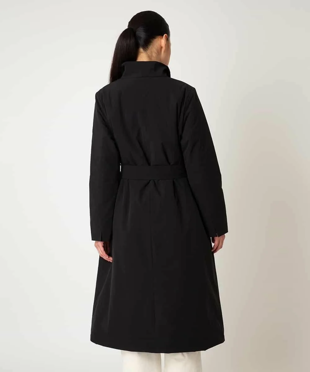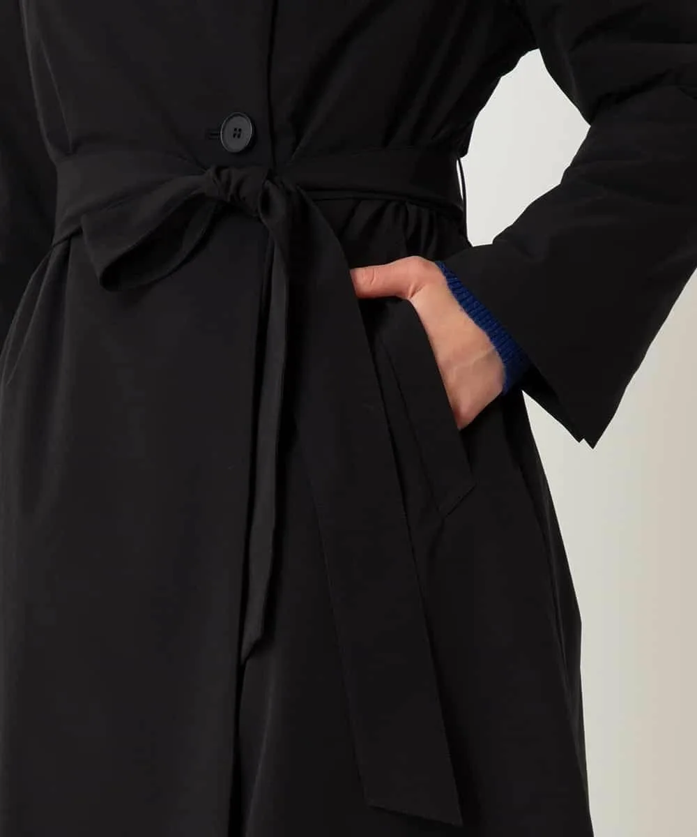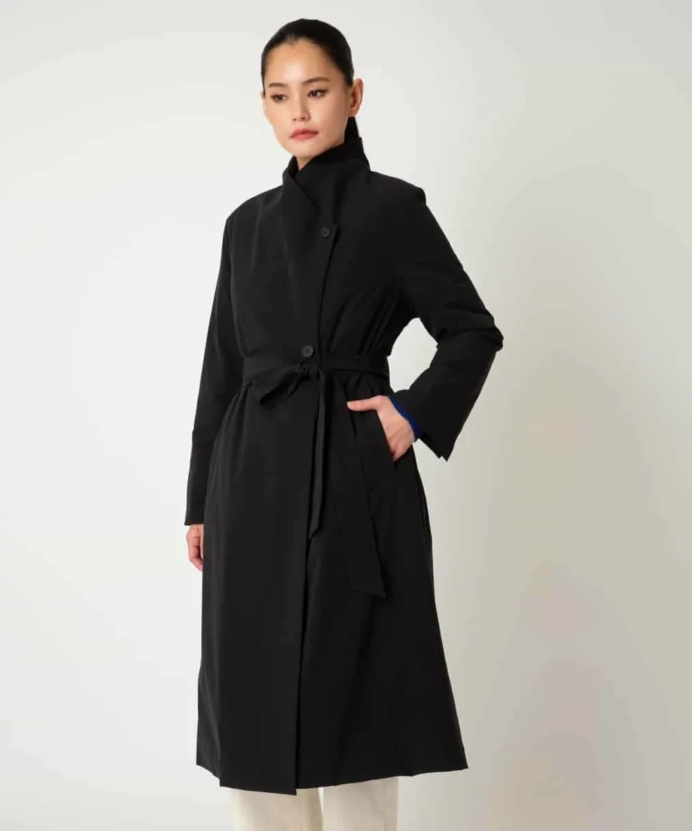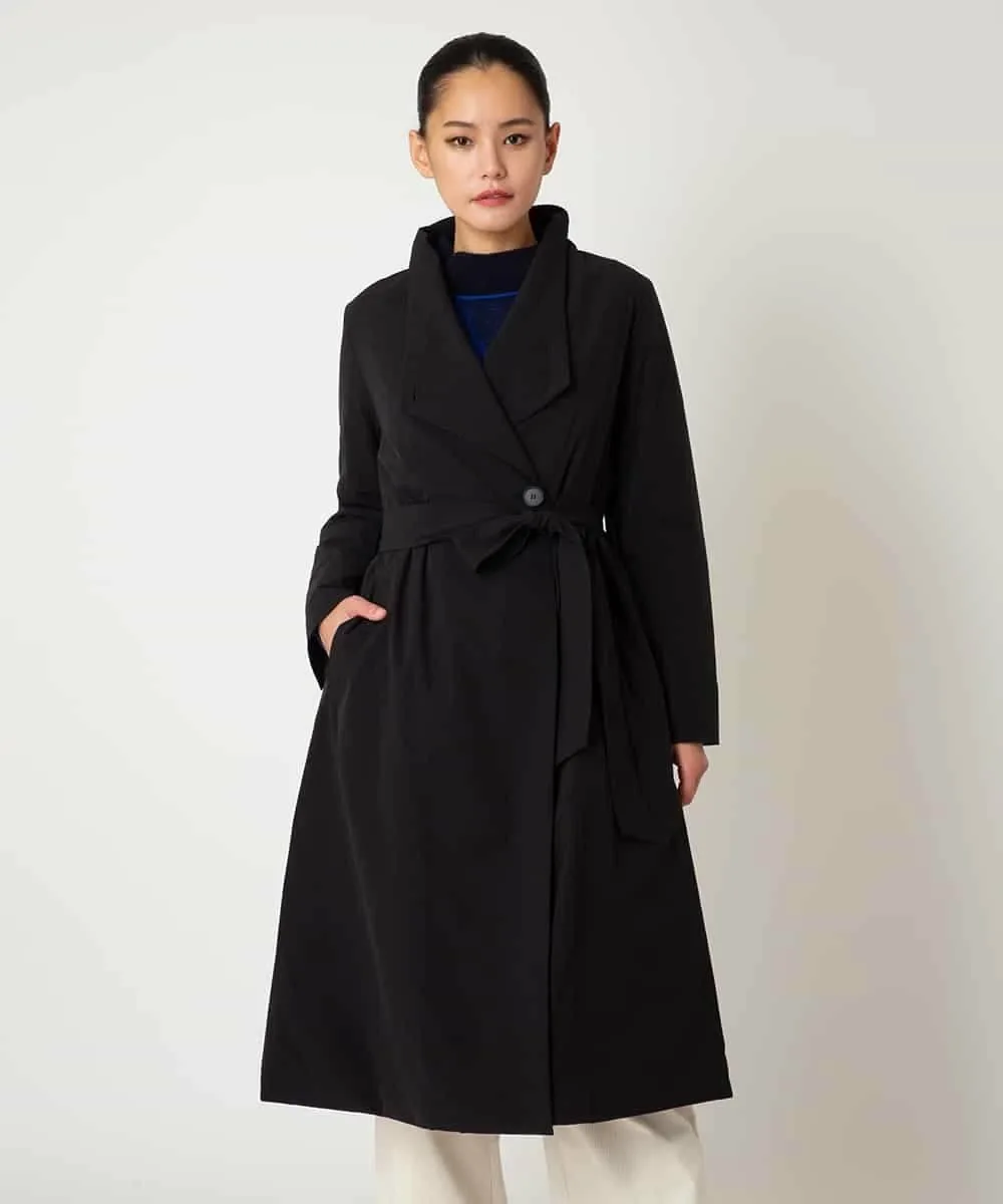 Это пальто изготовлено из матовой эластичной тафты, которая легкая и удобная в носке. Открытый воротник и четкий перед можно застегнуть на пуговицы для создания объемного силуэта. Подкладка отрегулирована таким образом, чтобы уменьшить объем, обеспечивая при этом тепло и комфорт. Мы также рекомендуем создать женственный силуэт, подчеркнув талию поясом из той же ткани.