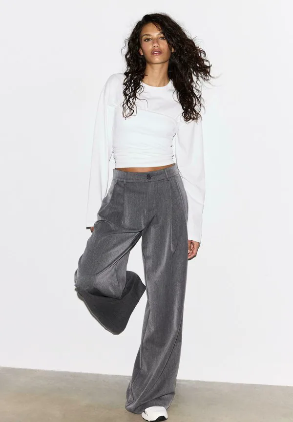 Топ с длинными рукавами и сборками Stradivarius, White 3 128₽