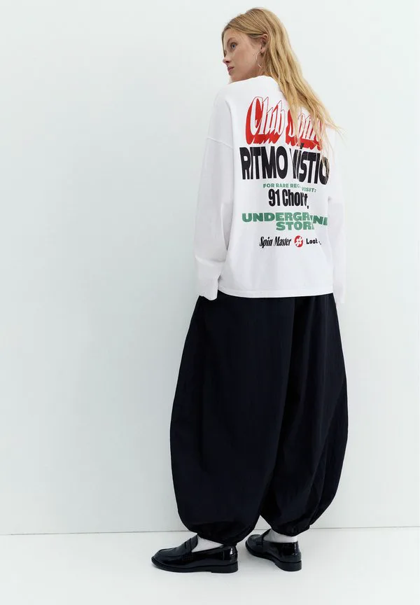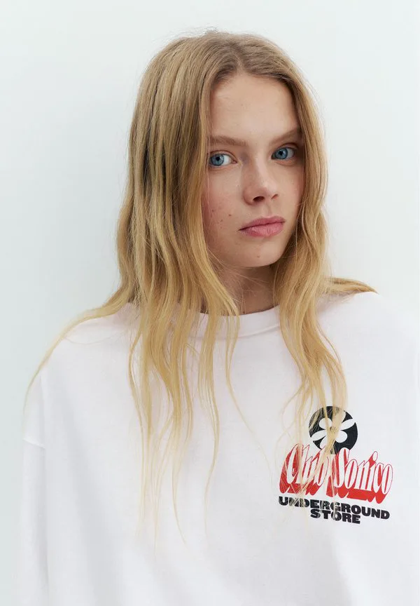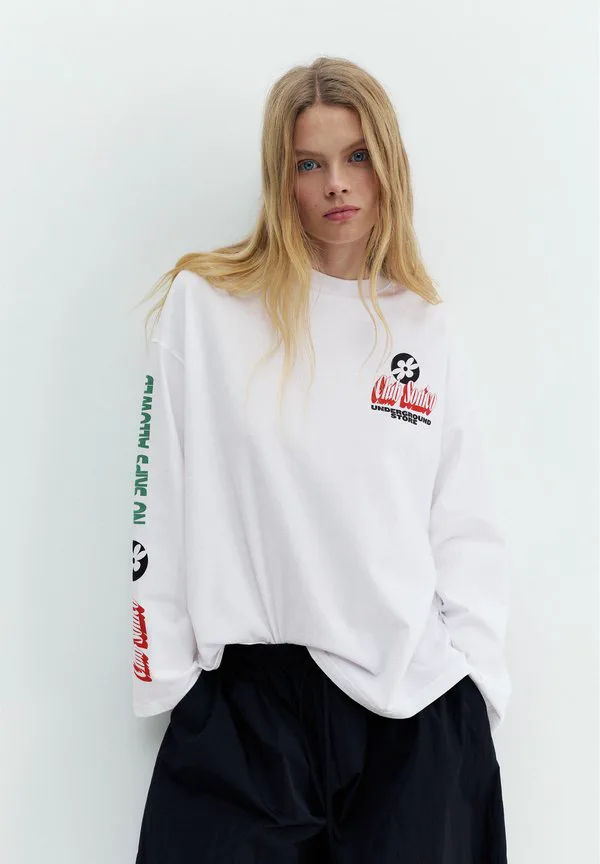 Футболка с длинными рукавами и принтом Pull&Bear, White