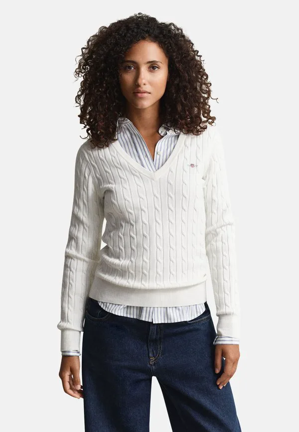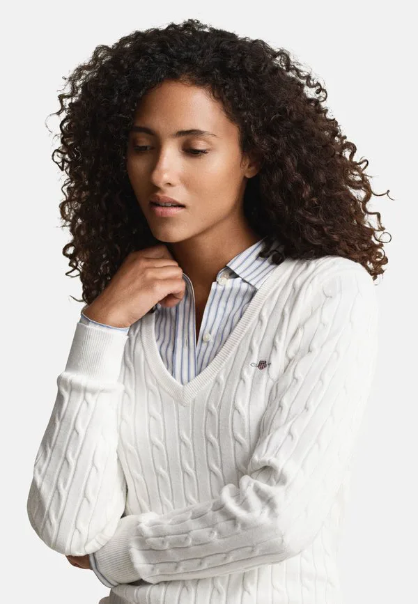 Джемпер с v-образным вырезом и эластичным кабелем Gant, Eggshell