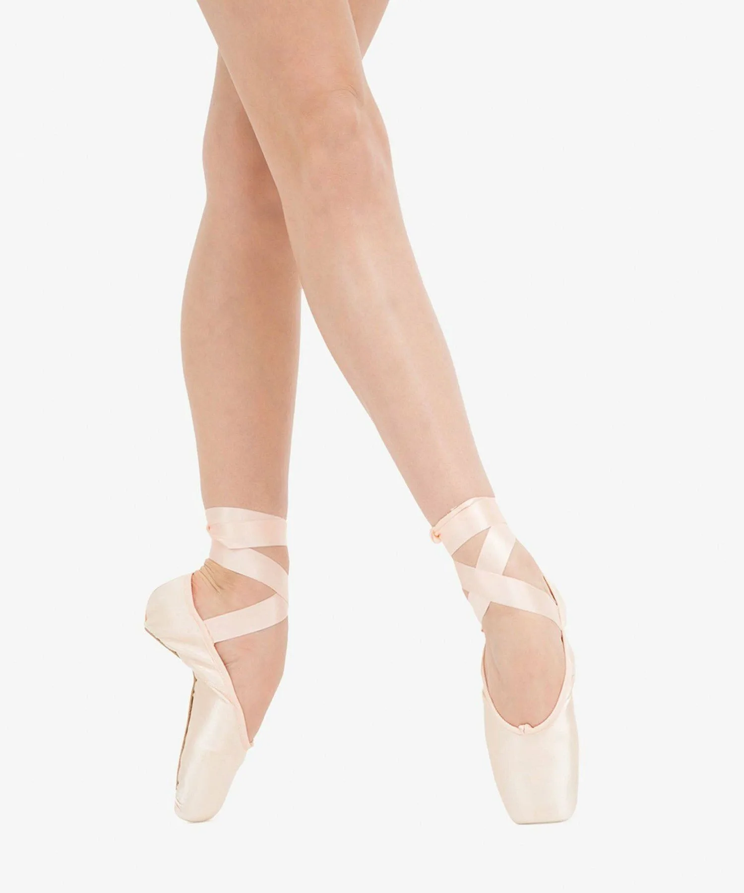 Пуанты для танцовщиц среднего и продвинутого уровня. Мягкая форма создает элегантный вид для ваших ног и обеспечивает комфортную посадку. Внутренняя часть платформы выполнена из амортизирующего материала. Почти 3/4 супинатора обеспечивает удобную посадку. Элегантный блеск атласа, а также передняя лента и прикрепленные ленты также являются изюминкой. Стандартная ширина, U-образный вырез, длинный верх и мягкая подошва.