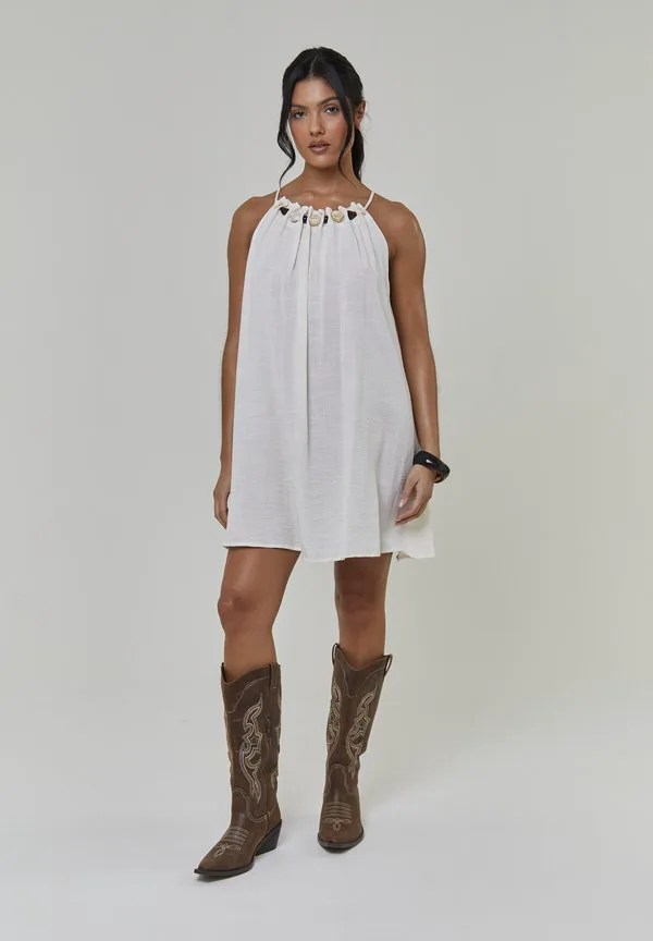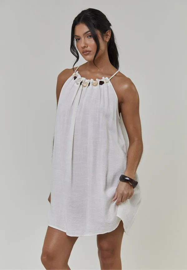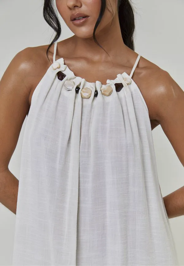 Струящееся мини-платье с бисерной отделкой South Beach, White