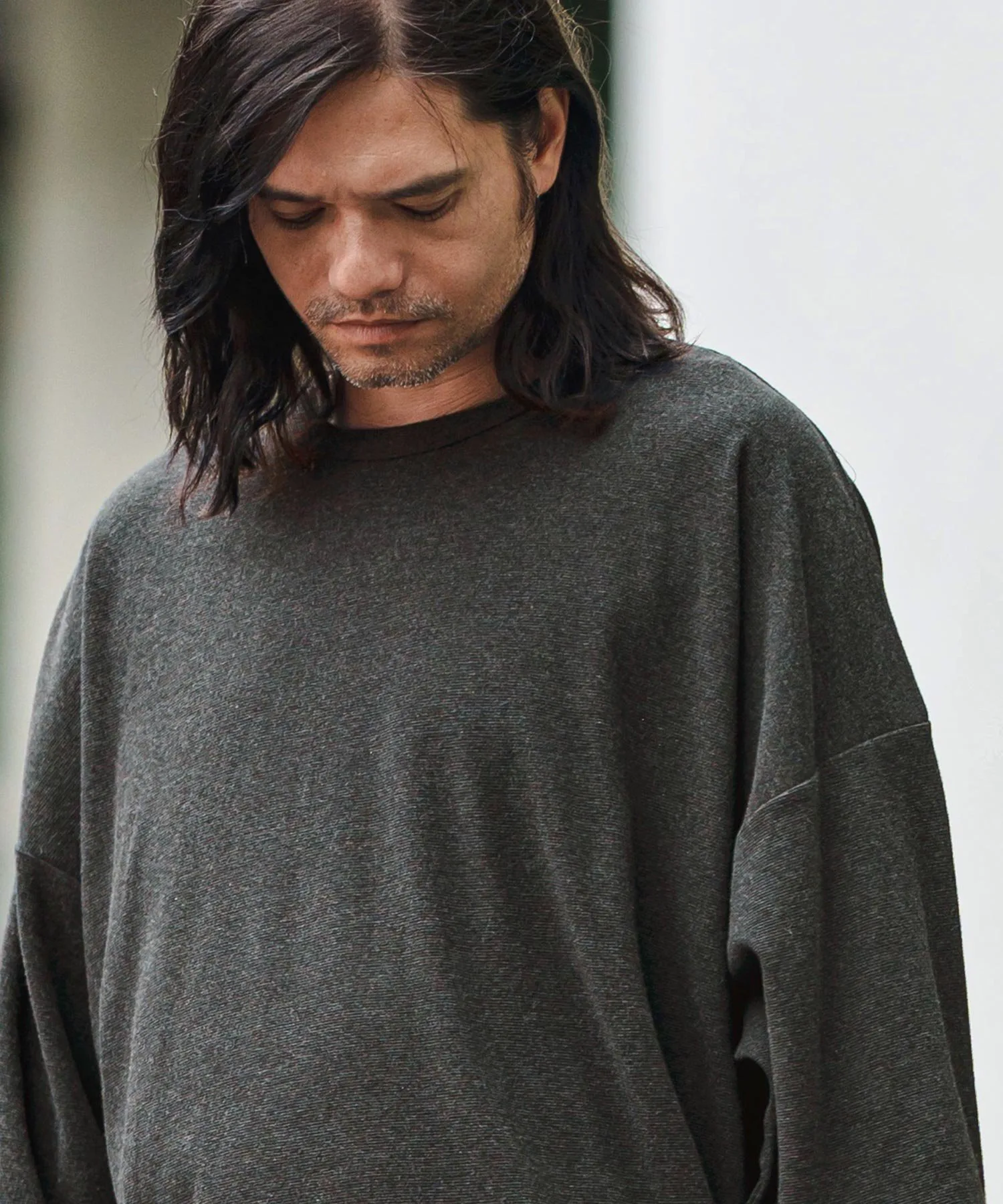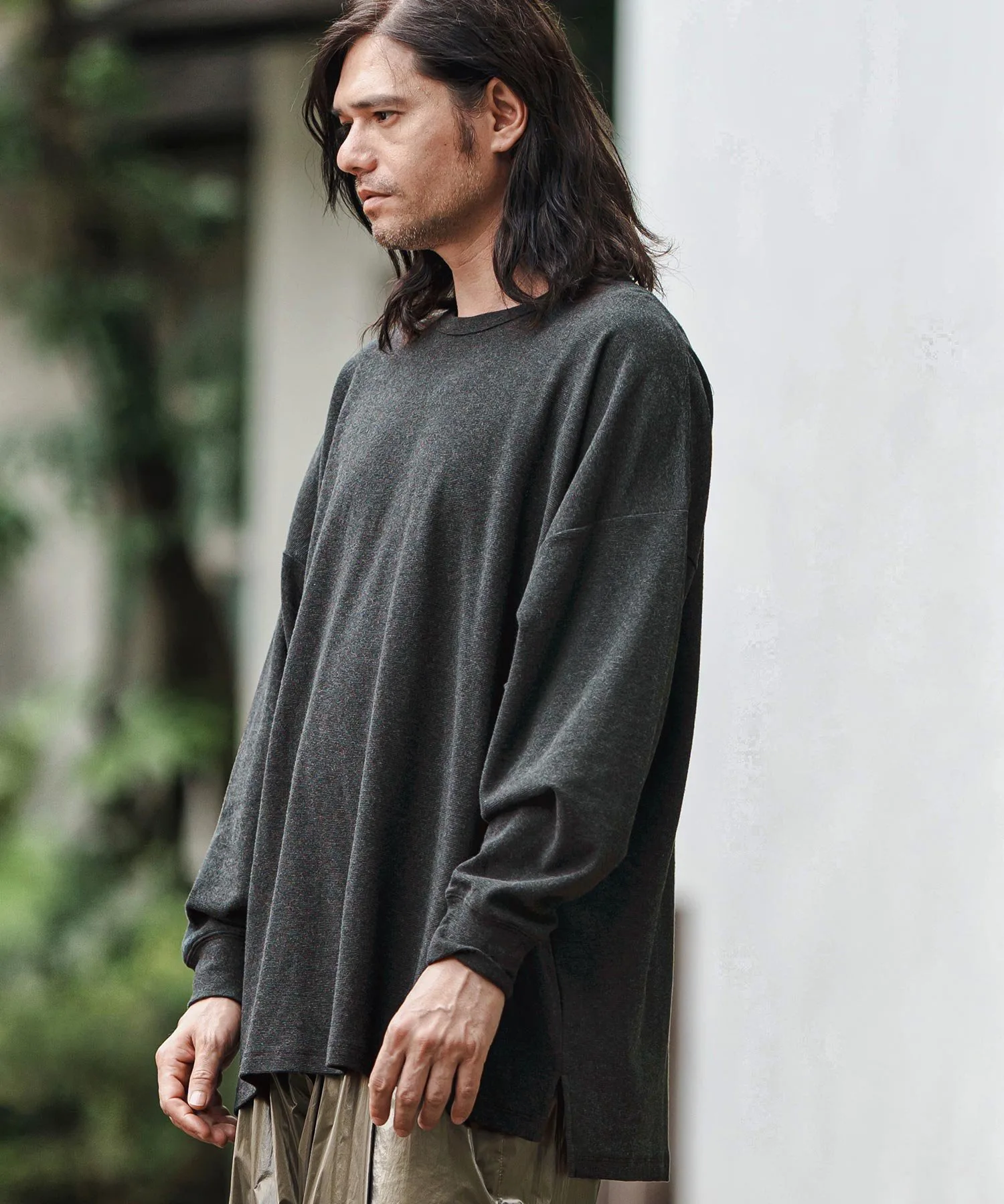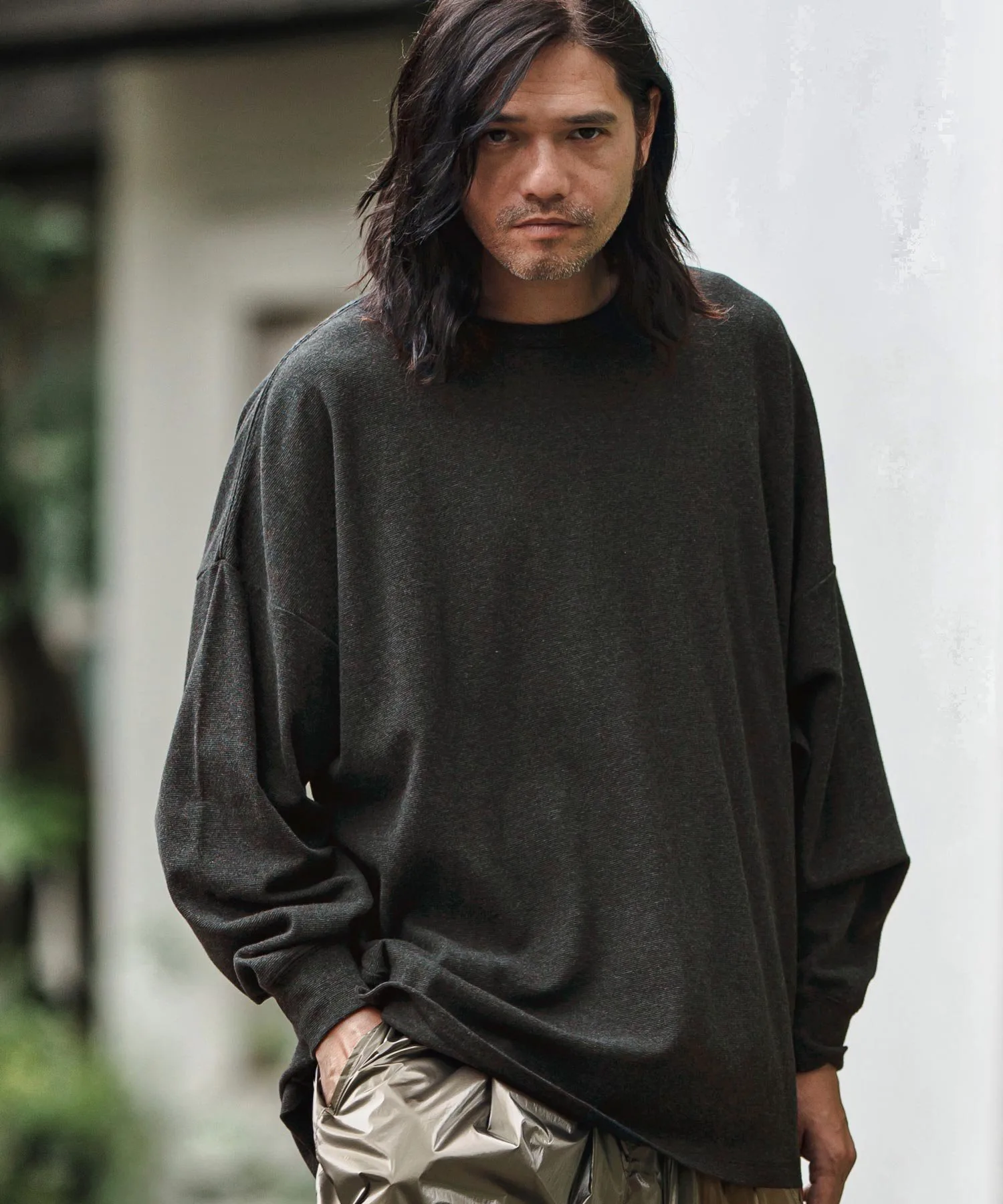 Свободный силуэт с достаточным пространством и приспущенными плечами для расслабленного ощущения.