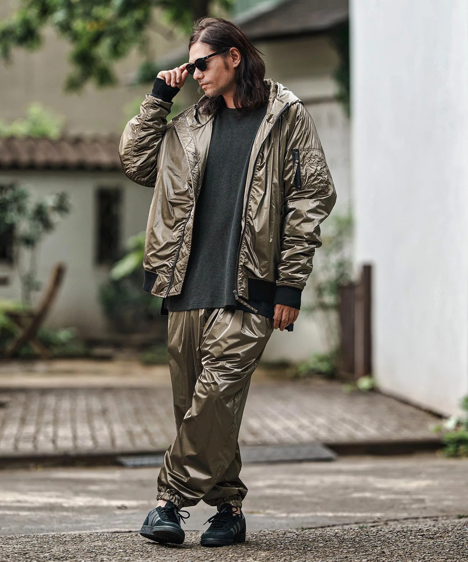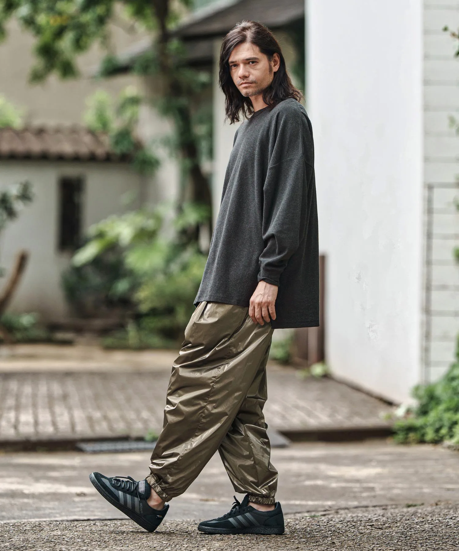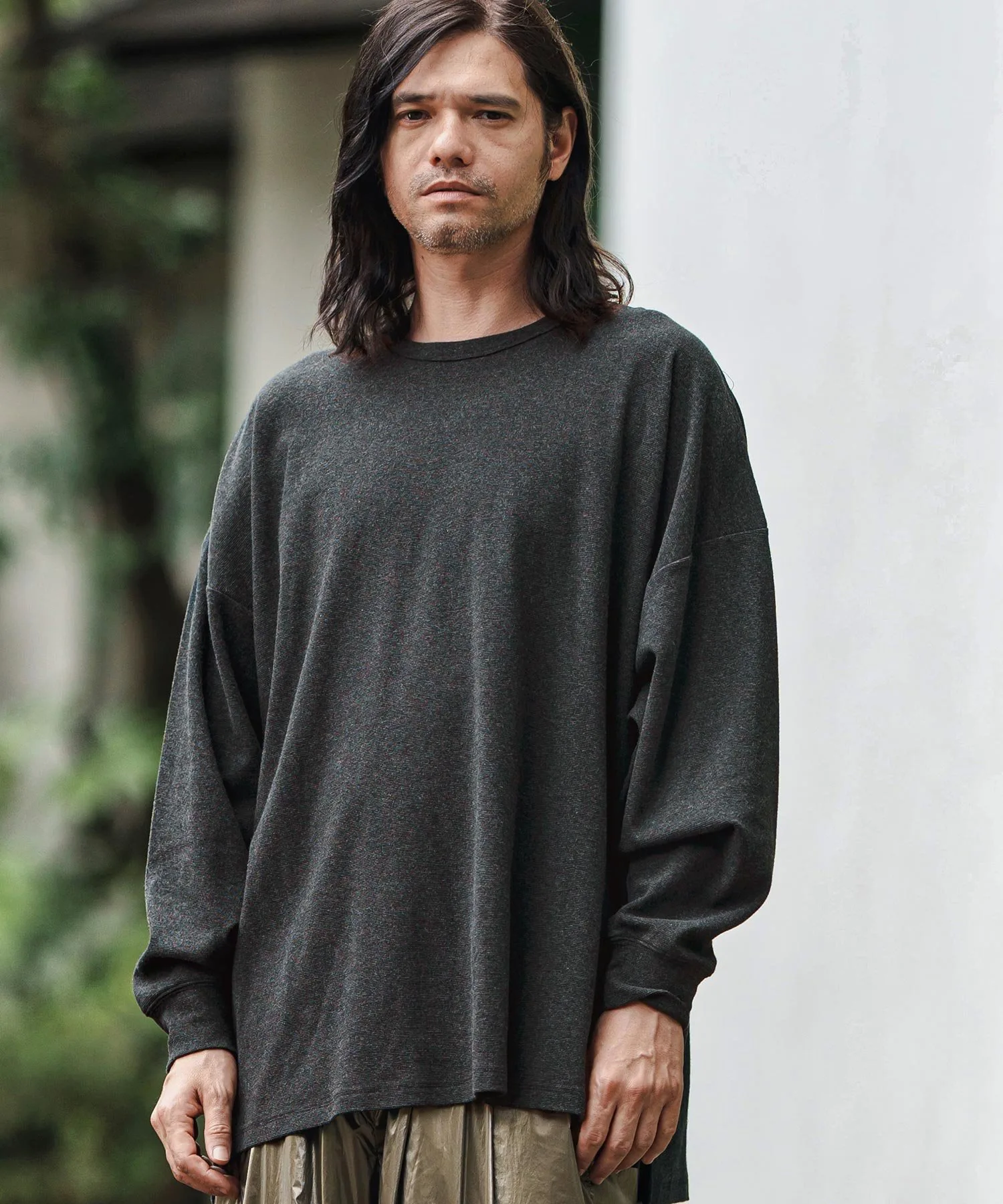 Свободный силуэт с достаточным пространством и приспущенными плечами для расслабленного ощущения.