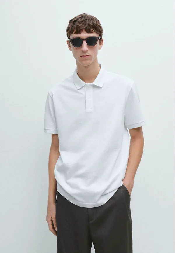 Рубашка-Поло с микротекстурой Massimo Dutti, White