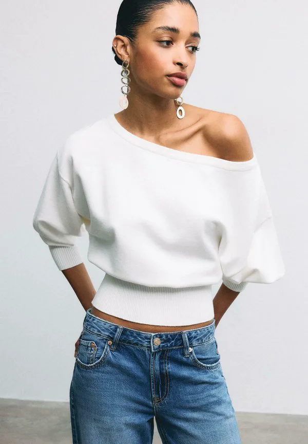Джемпер с асимметричным подолом Stradivarius, White