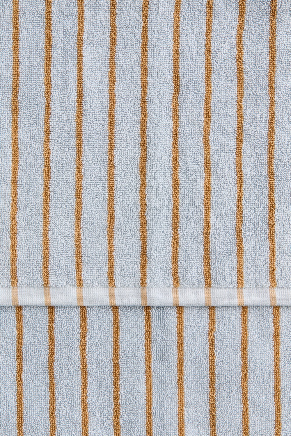 Это полотенце изготовлено из мягкой, хорошо впитывающей хлопковой махровой ткани. Благодаря окрашенным в пряжу полоскам его можно легко комбинировать с однотонными полотенцами, создавая современный и элегантный образ ванной комнаты. Полотенце также оснащено петлей для подвешивания. Плотность 480 г/м².