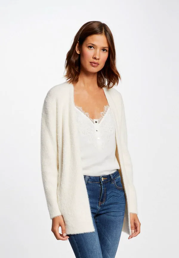 Длинный пушистый кардиган Morgan, White Denim