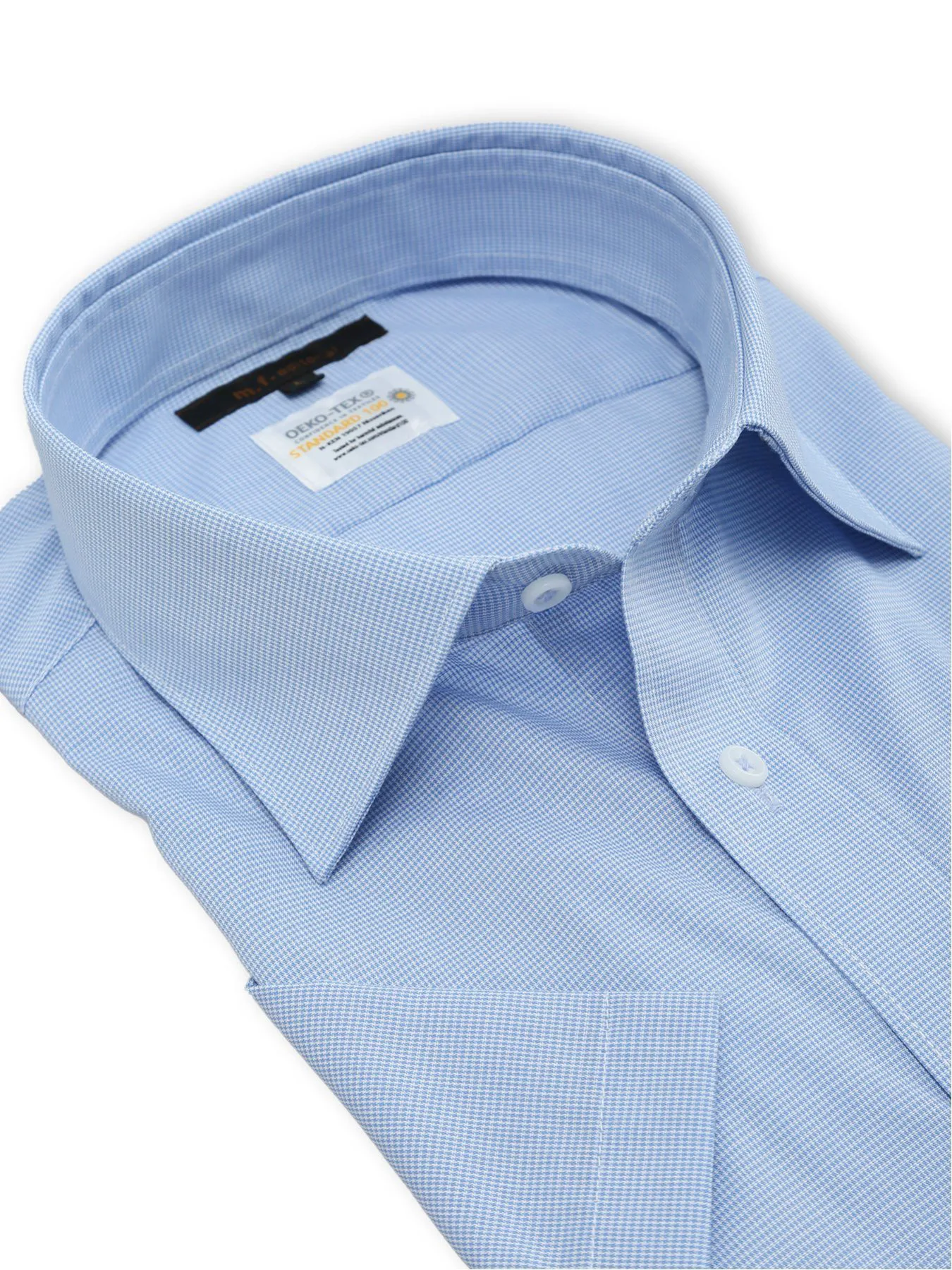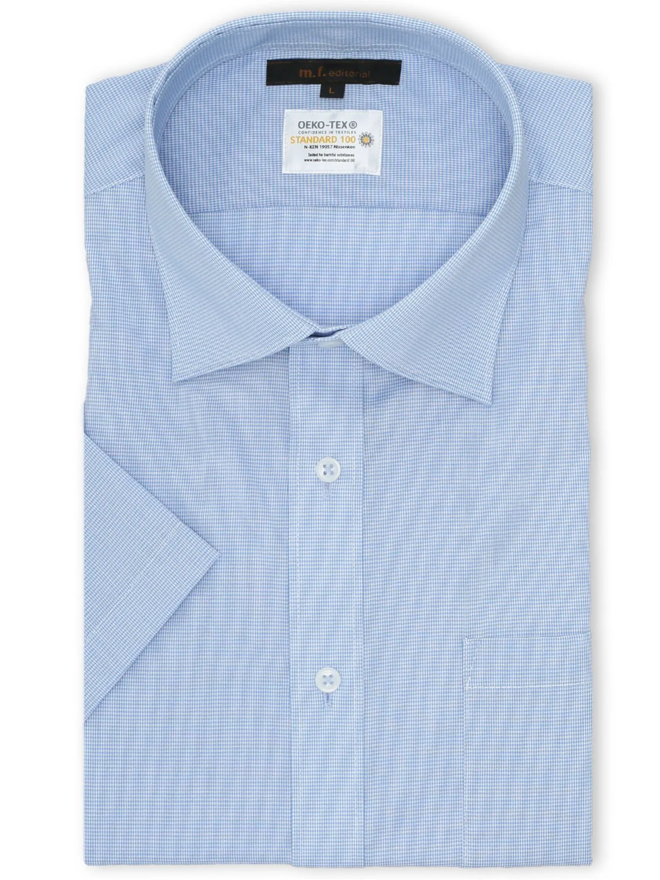 Рубашка стандартного кроя, с широким воротником и короткими рукавами, устойчивая к сминанию, влагоотводящая, стандартного кроя.