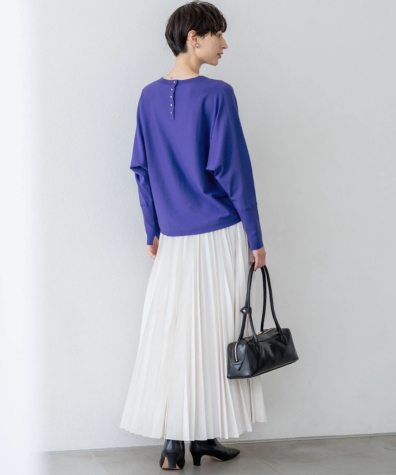 Этот пуловер с рукавами-летучей мышью — фаворит каждого года. Немного разная длина передней и задней части создает более мягкий, женственный образ, если носить его с заправленным воротником. Длинная ребристая отделка и разрезы на манжетах добавляют нотку элегантности. Расслабленный и удобный, но с изысканным силуэтом, который не слишком повседневный, он идеально подходит для любого случая, от офиса до повседневной носки. Он легко сочетается с брюками или юбками, позволяя создавать разнообразные образы, поэтому вы захотите собрать коллекцию в разных цветах. Доступен в шести цветах: изысканный серый (#004), эффектный черный (#005), привлекательный оранжевый (#020), мягкий бежевый (#033), женственный коричневый (#054) и акцентный синий (#070).