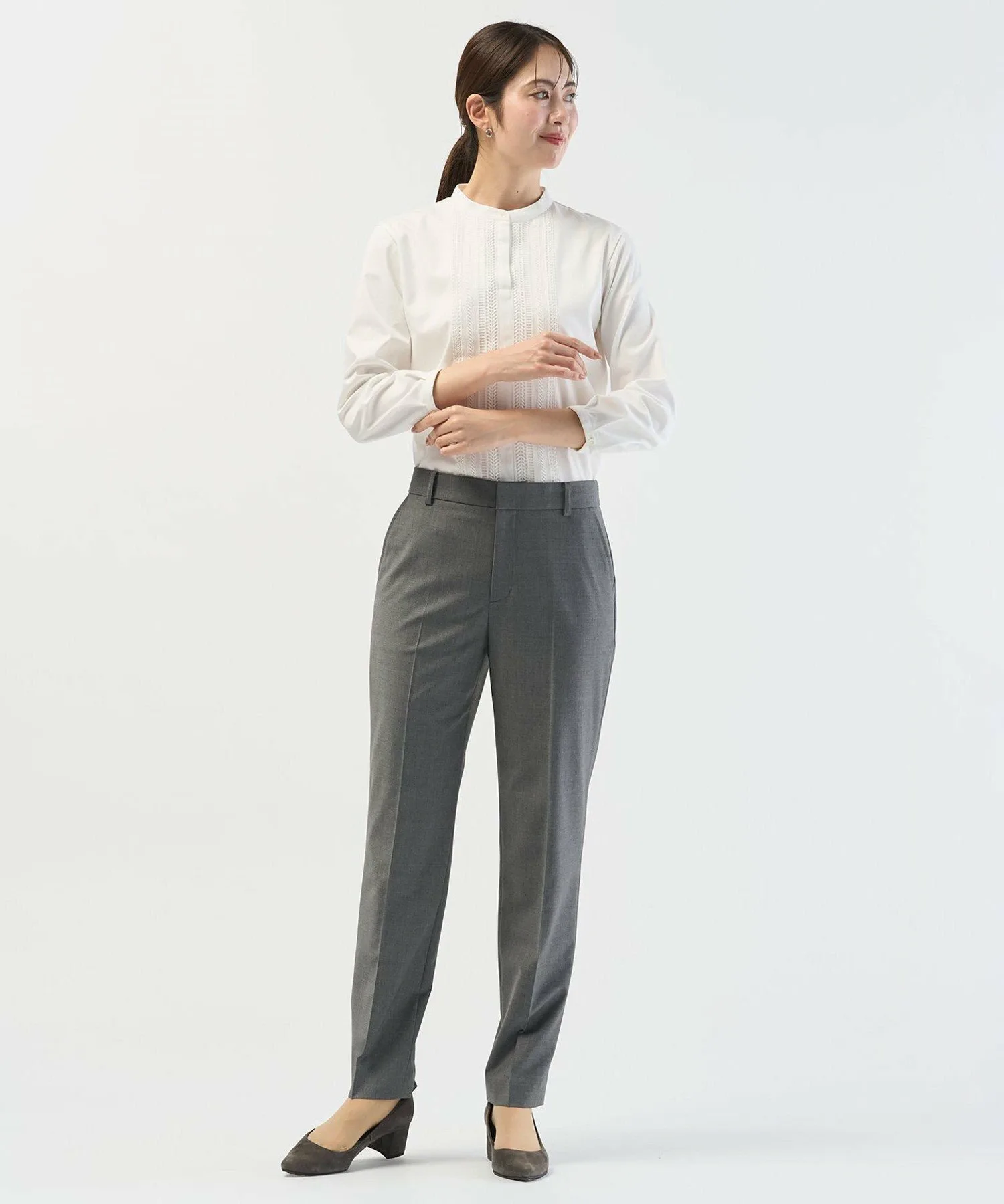 Эти зауженные брюки имеют центральную складку для создания элегантного силуэта. Сзади расположен прорезной карман, а передние карманы пришиты вручную для большей изысканности. Мы рекомендуем сочетать их с пиджаком из того же материала. Сдержанный средне-серый цвет создает утонченный и элегантный образ. Брюки скроены таким образом, чтобы длина была на 20 см ниже колена.