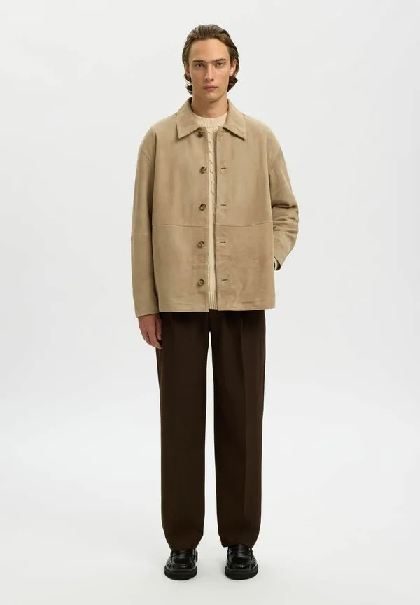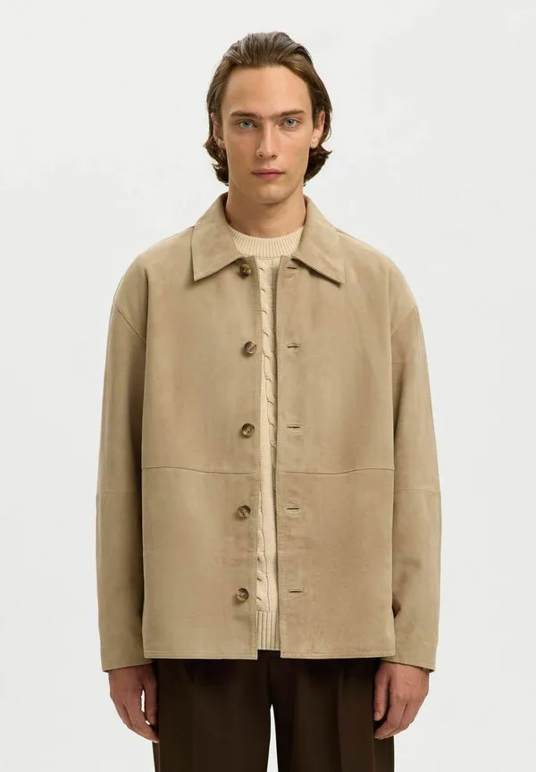 Кожаная куртка wildleder Selected, White Pepper