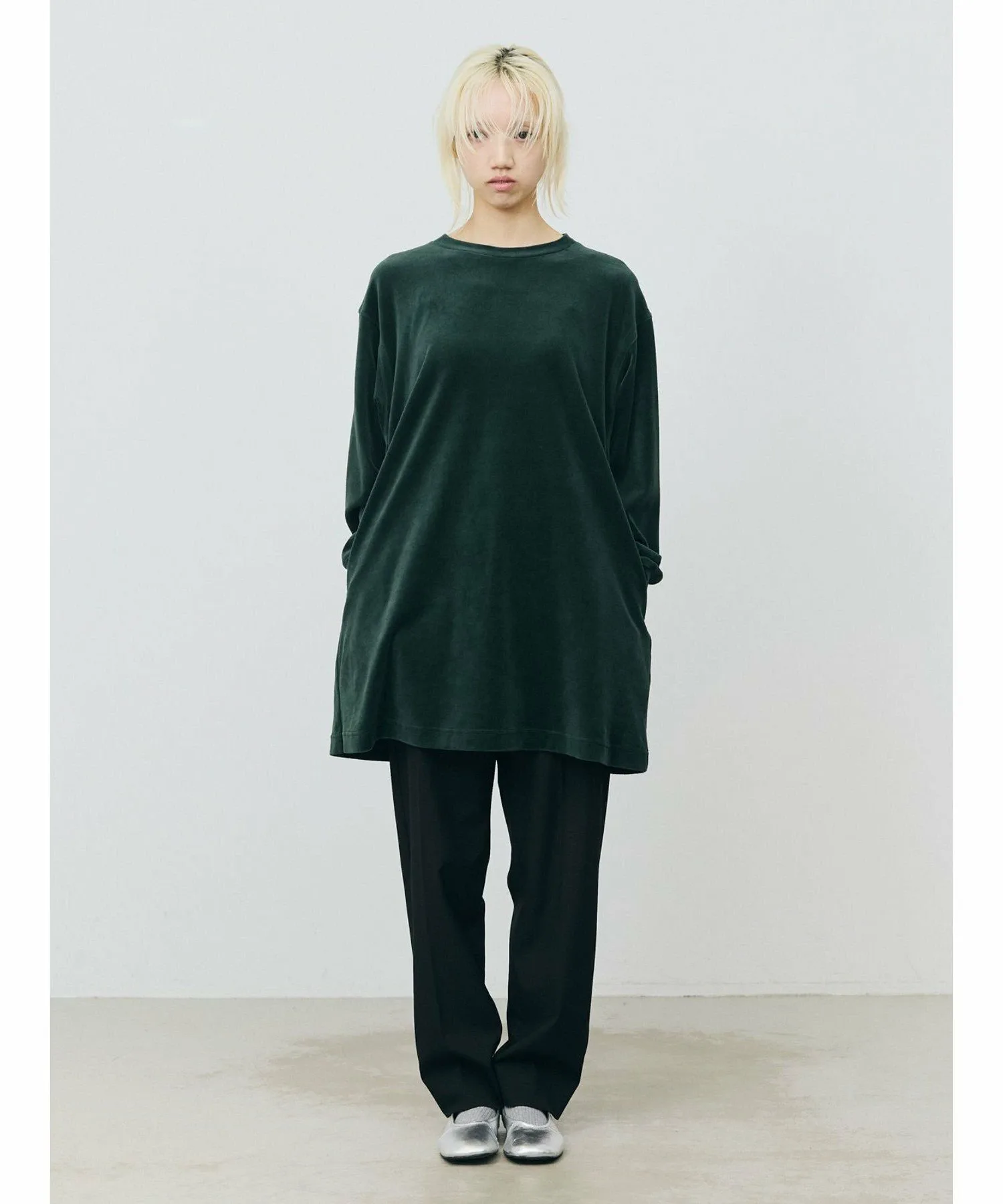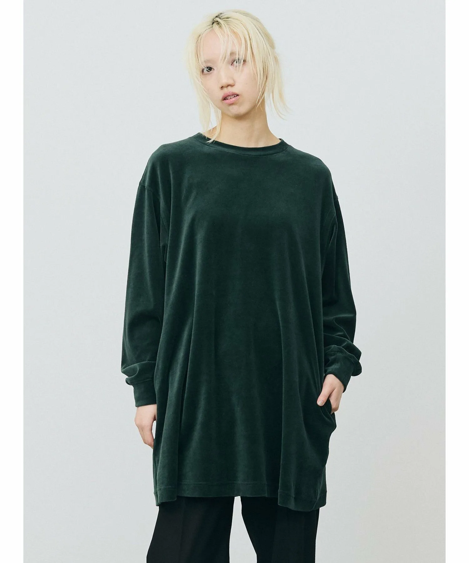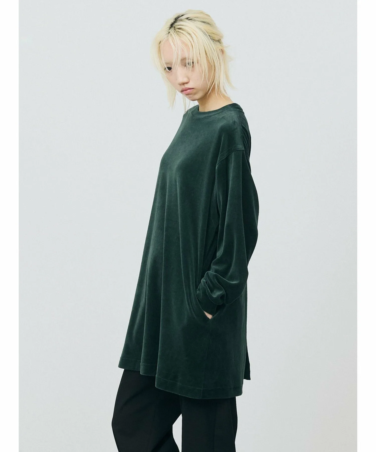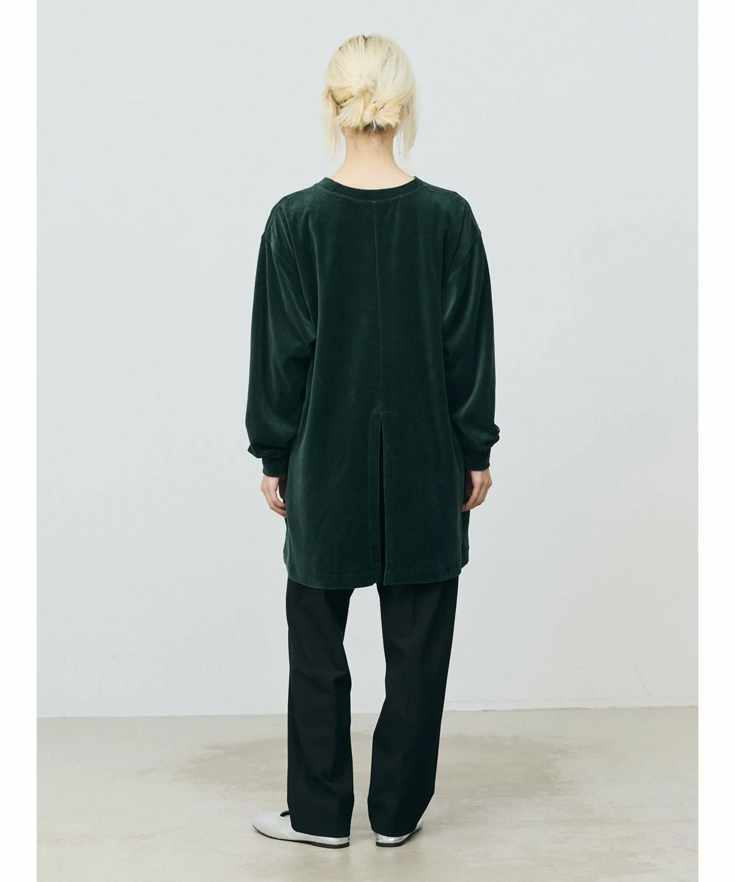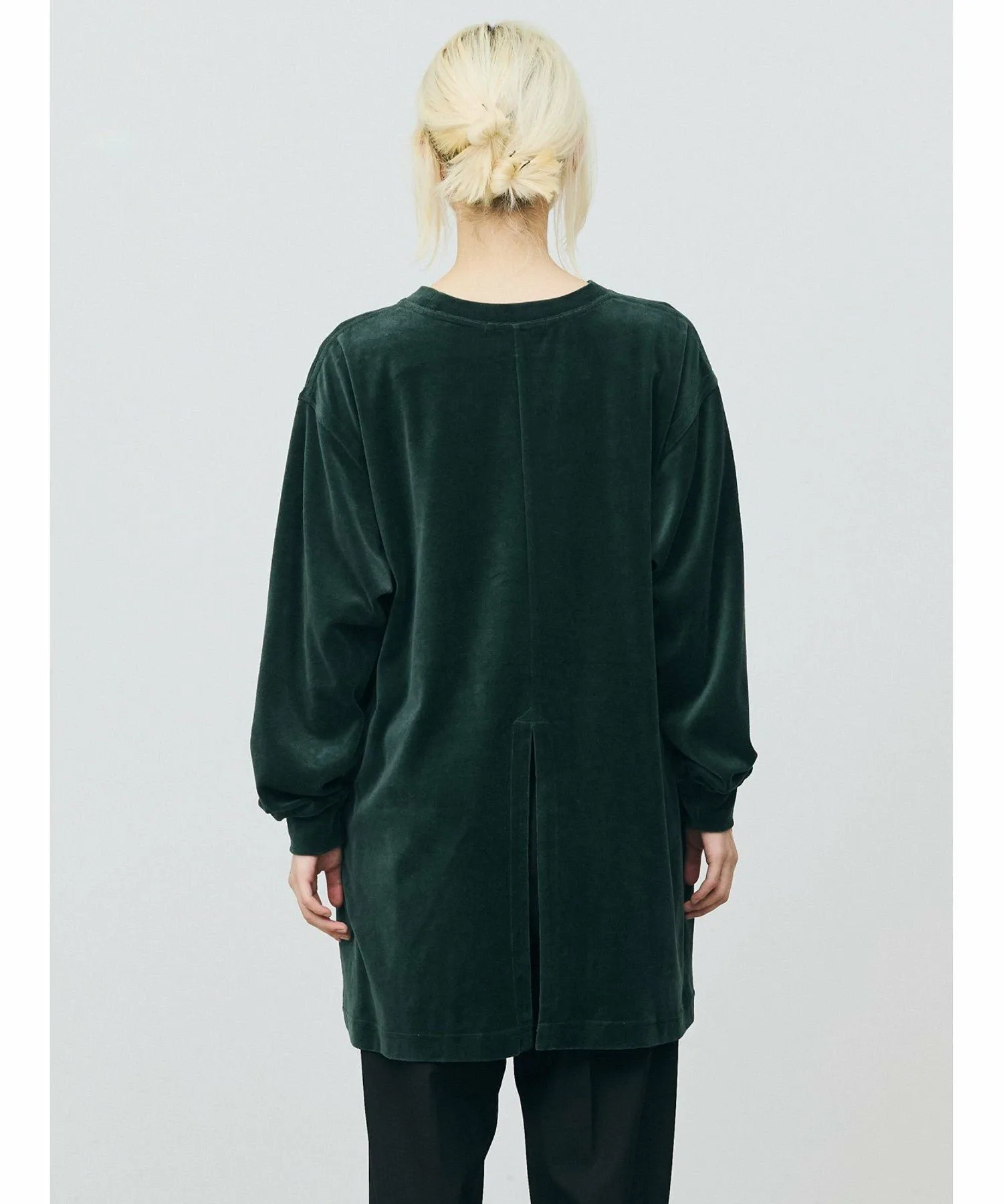Велюровое платье с большим разрезом на подоле сзади. Созданное на основе мужской толстовки, оно имеет удлиненную длину, что придает ему женственный, цельный дизайн. Велюровый материал делает его женственным и идеально подходящим для женской одежды, не создавая при этом ощущения излишней повседневности. Сочетайте его с брюками для создания стильного образа или с юбкой для более женственного акцента.