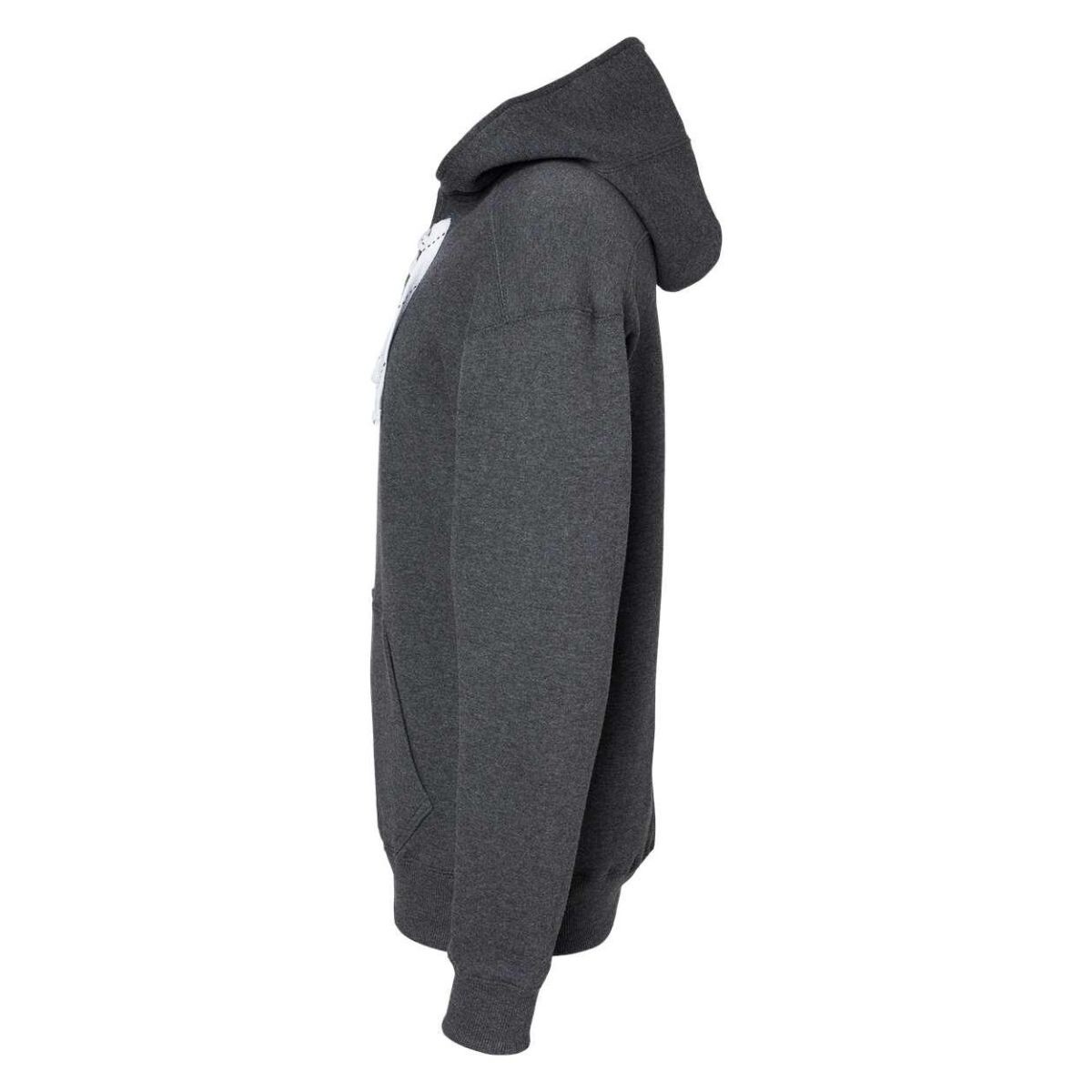 10 унций/ярд, хлопок/полиэстер кольцевого прядения 80/20. Капюшон спортивной конструкции, состоящий из трех частей, позволяет декорировать его. Спортивные плечевые вставки. Разрезная планка спереди с шестью пришитыми люверсами. Толстый плоский шнурок из белого кружева. Ребристые боковые складочки и панели 2х2. Сменные шнурки нестандартного цвета можно заказать отдельно (модель 8831).
