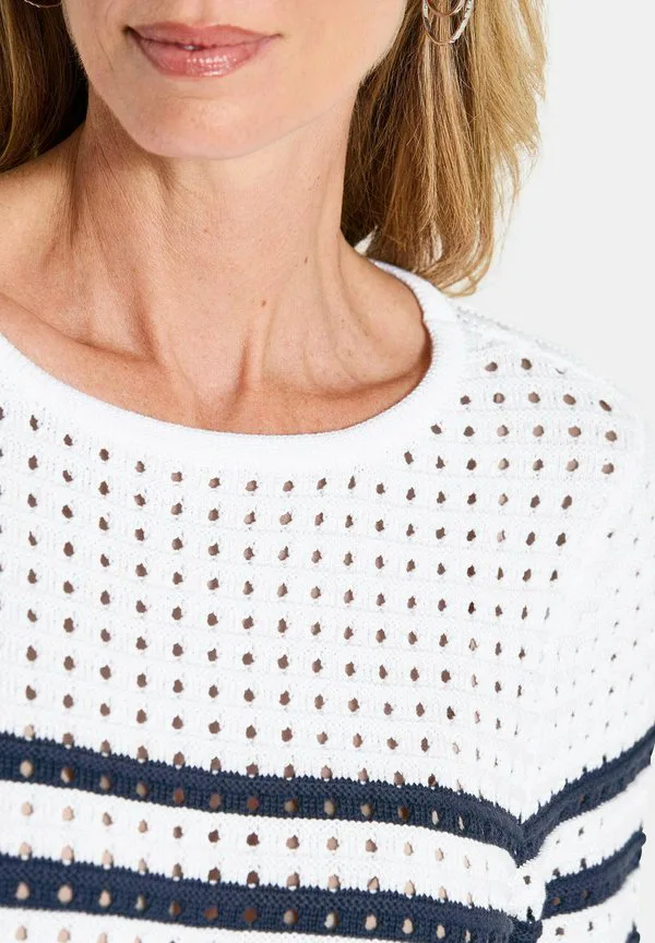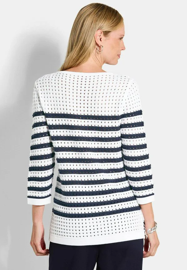 Пуловер maritimer ringel с ажурным джемпером Goldner, White/Navy Striped
