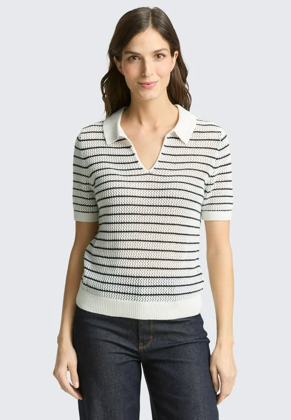 Рубашка поло Tom Tailor, White/Navy Structure Stripe