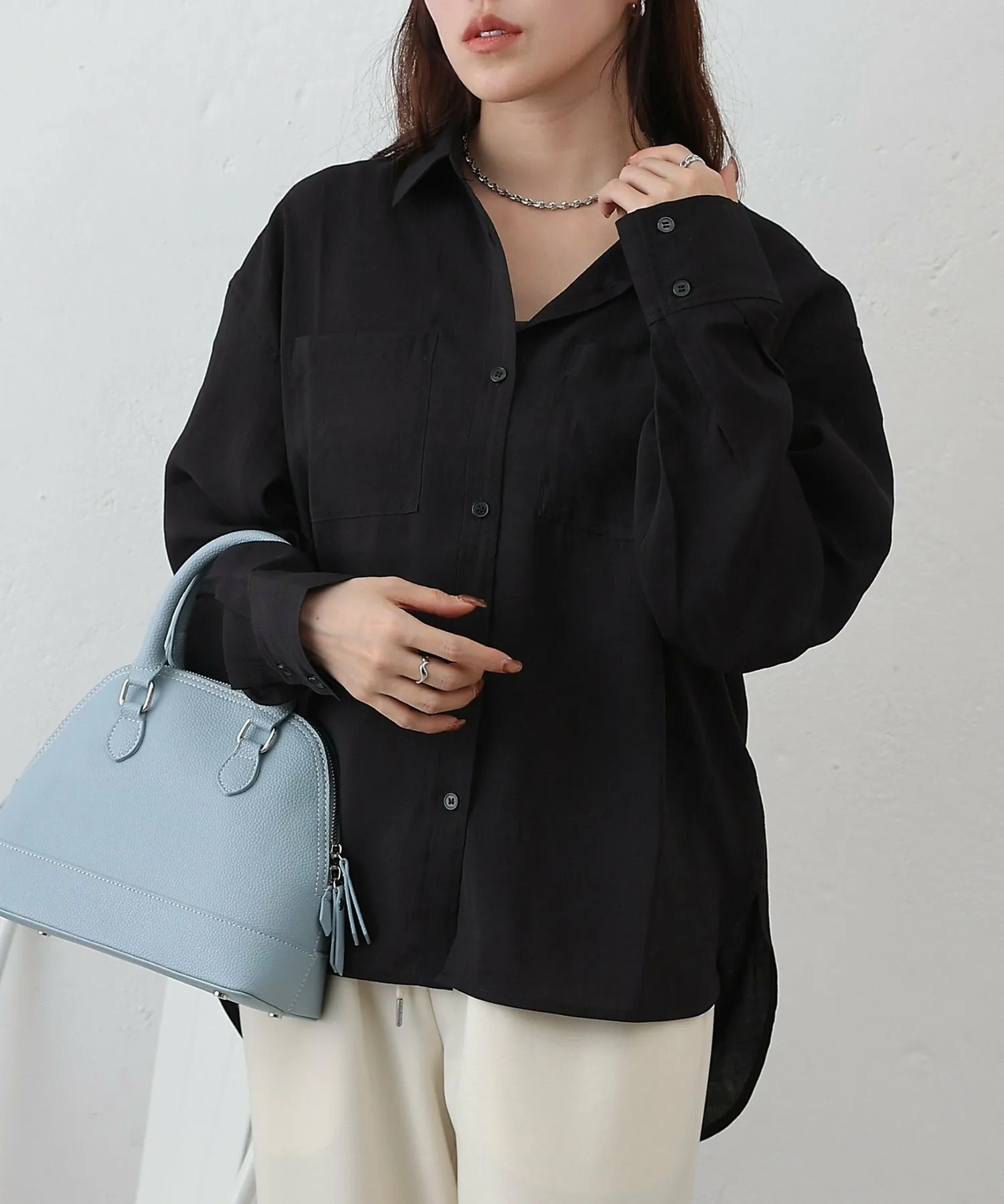 При ношении в качестве топа, расстегнув одну или две пуговицы сверху и снизу, вы создадите расслабленный образ, который станет модным трендом в этом году. ◎