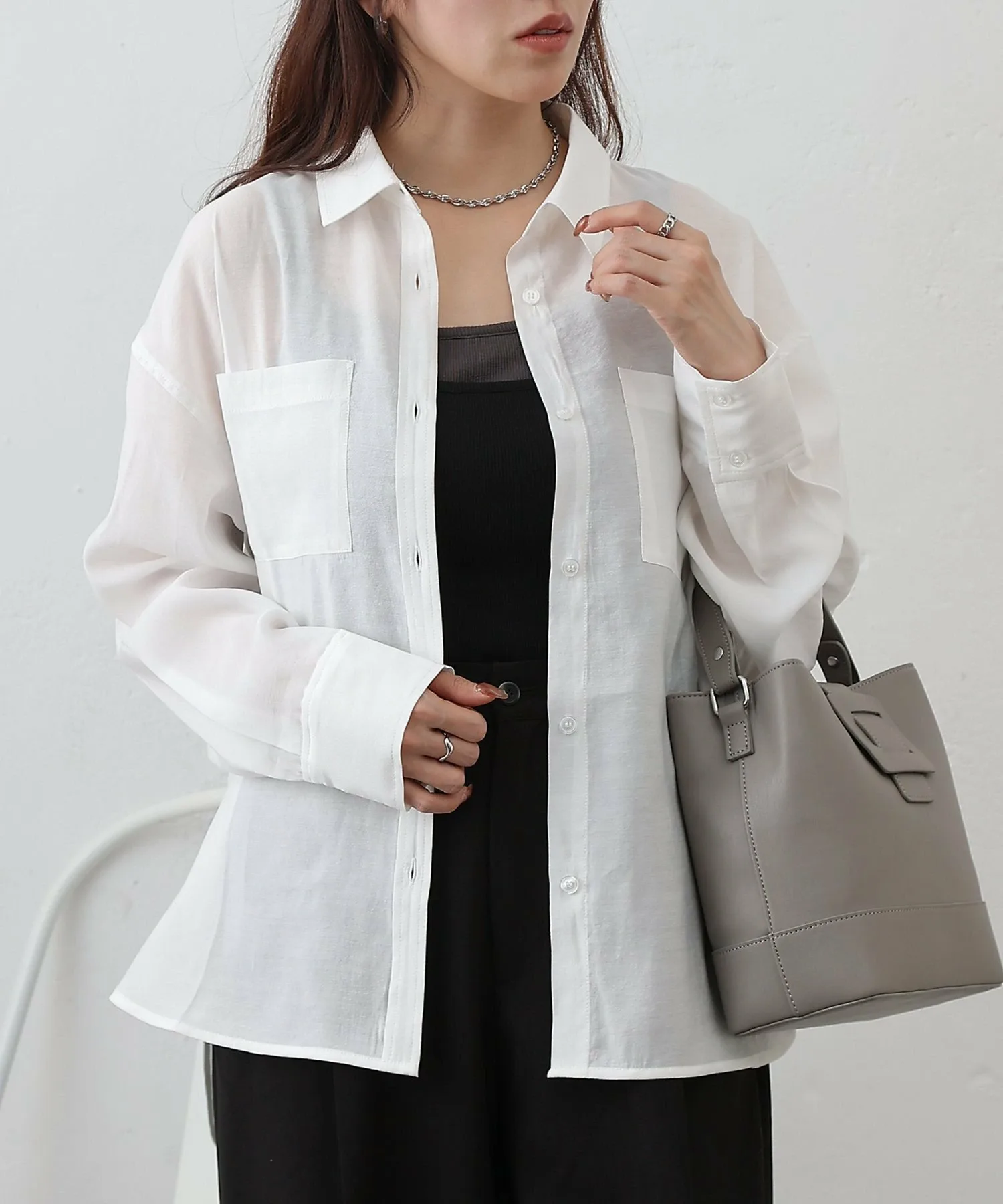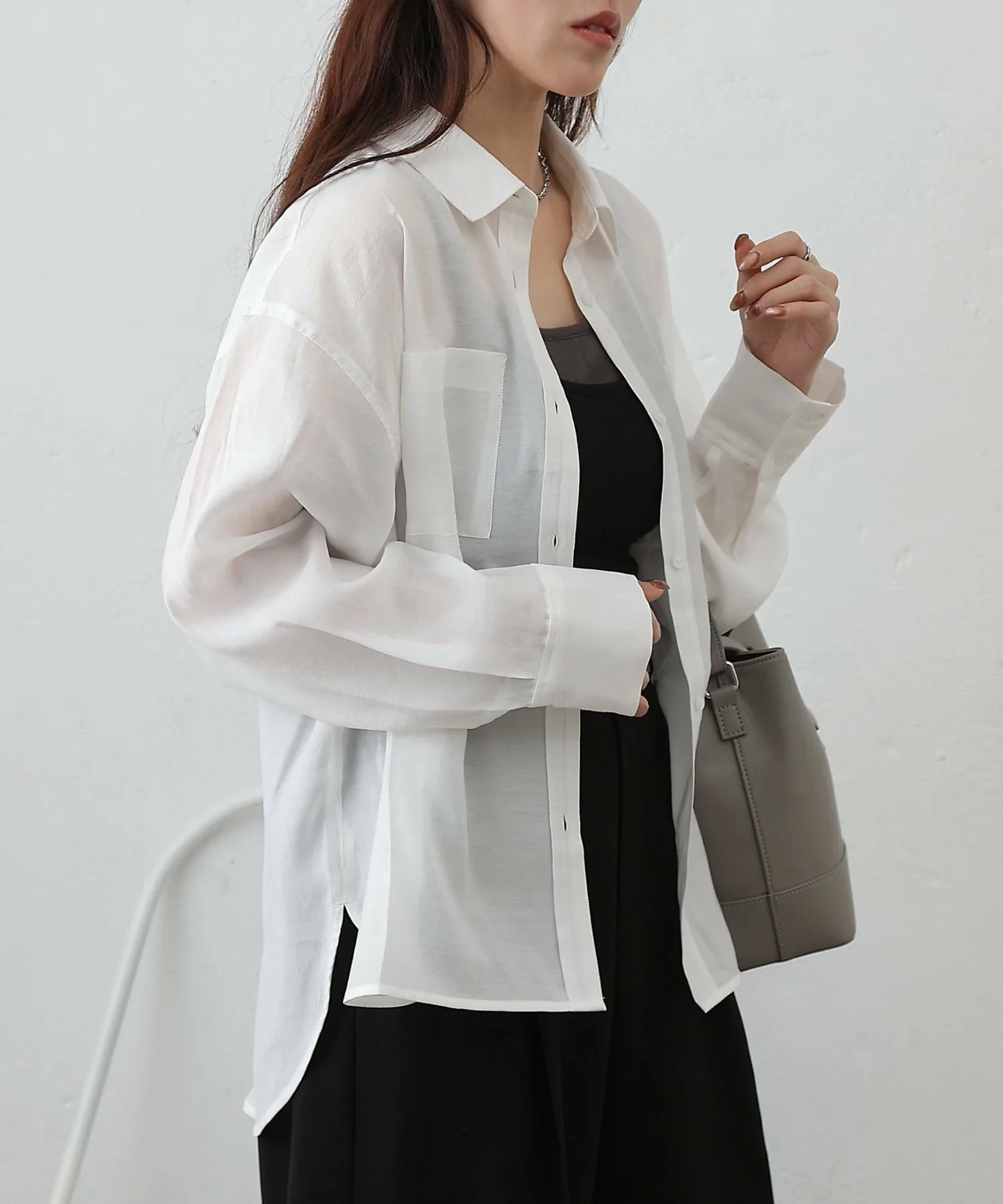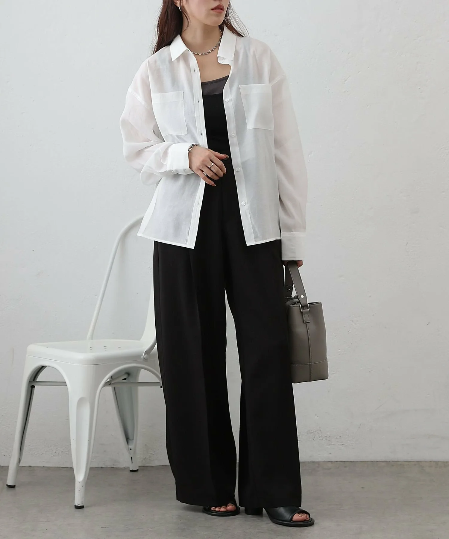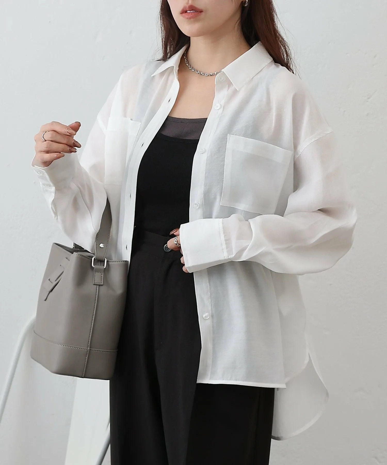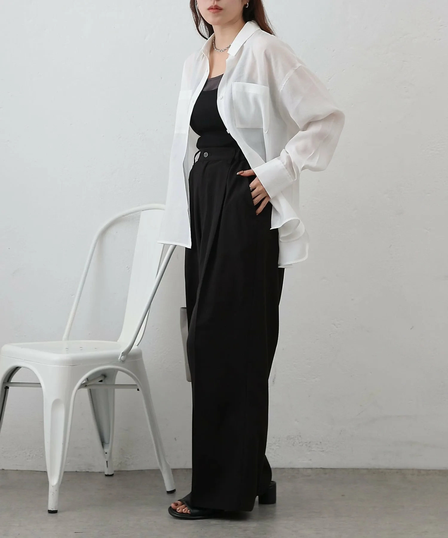При ношении в качестве топа, расстегнув одну или две пуговицы сверху и снизу, вы создадите расслабленный образ, который станет модным трендом в этом году. ◎