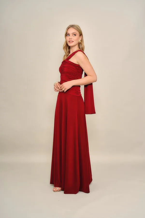 Плиссированное вечернее платье ромео Wal G., Wine