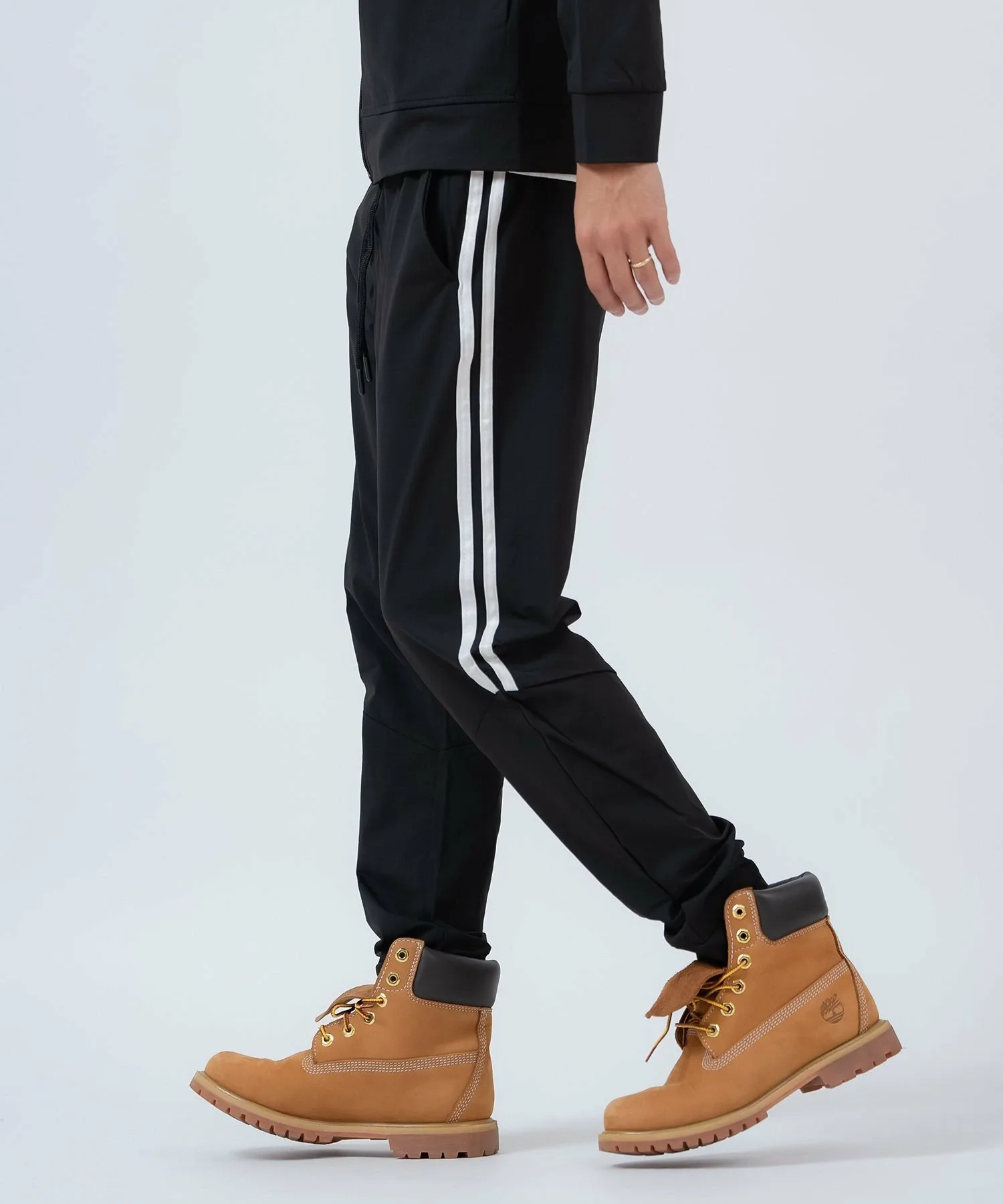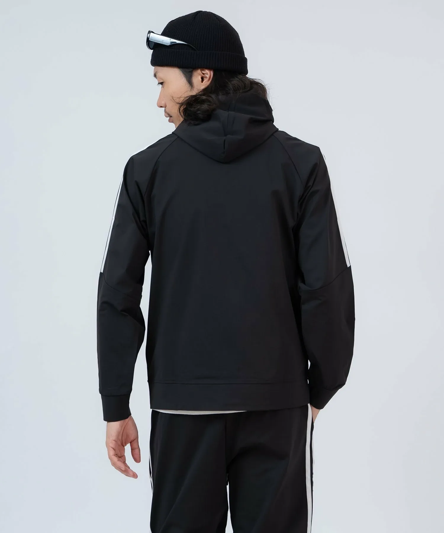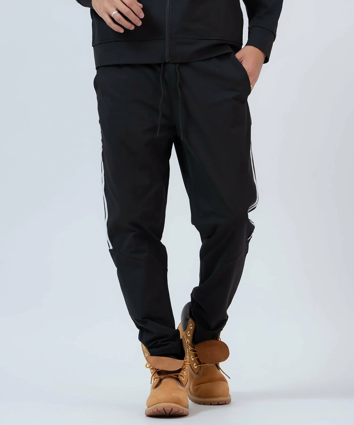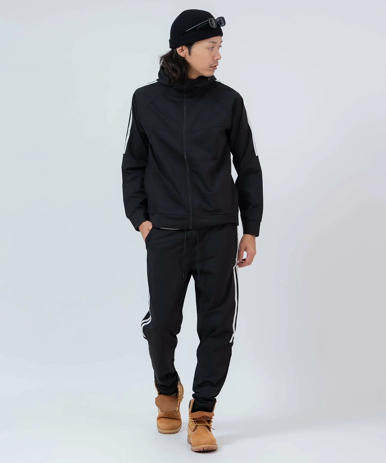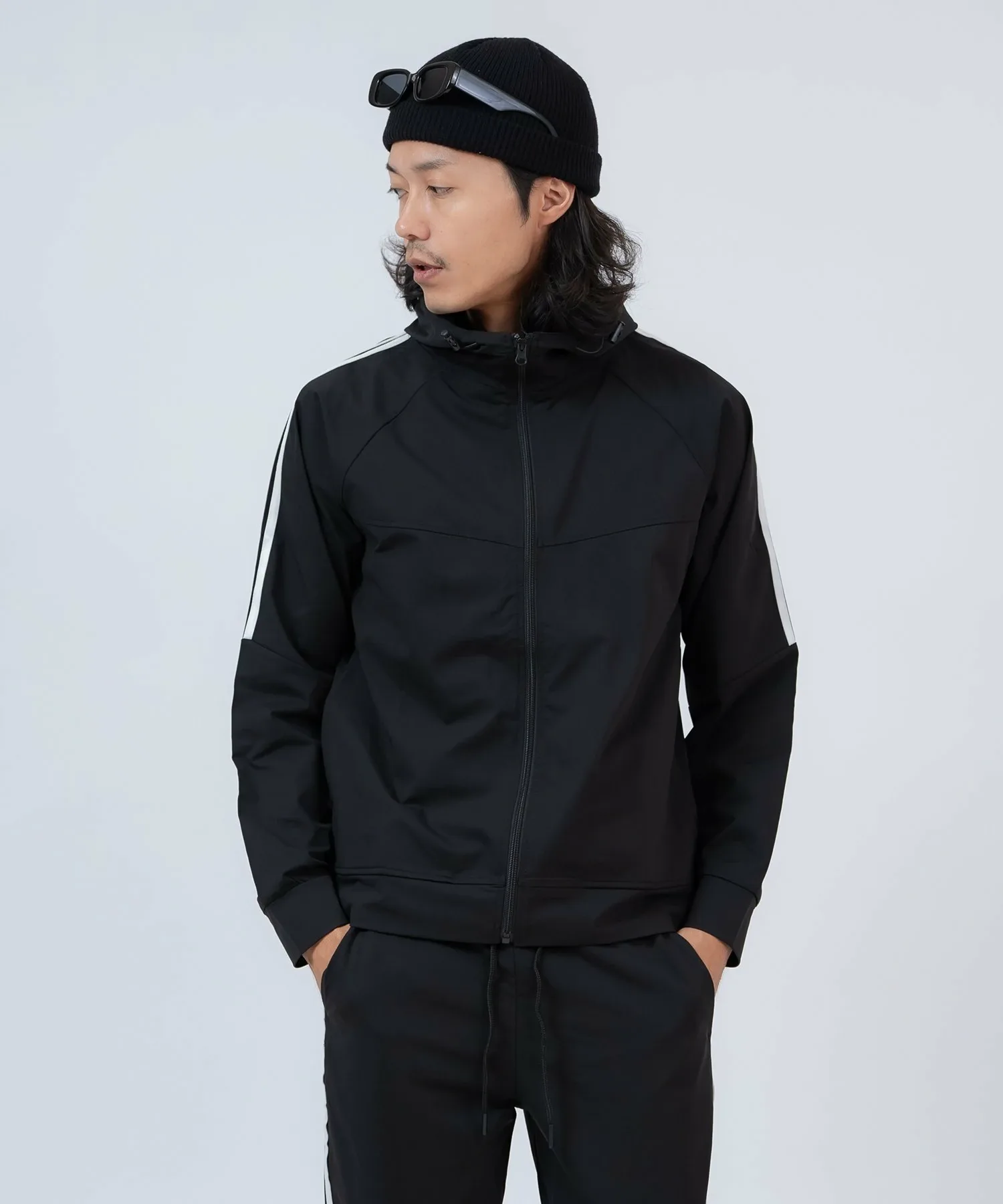 ●Комплект из верха и низа, состоящий из толстовки на молнии с модными боковыми полосками и спортивных брюк с ребристым низом для аккуратного вида.