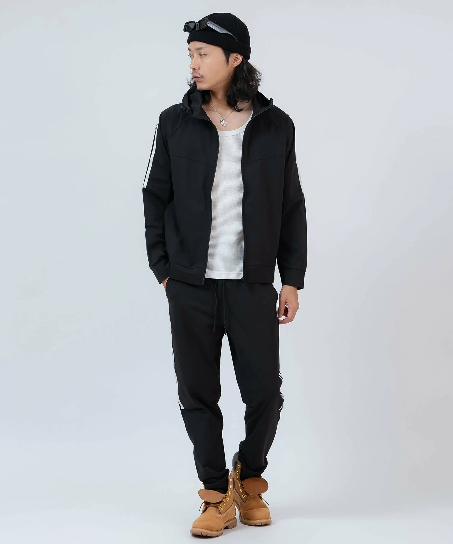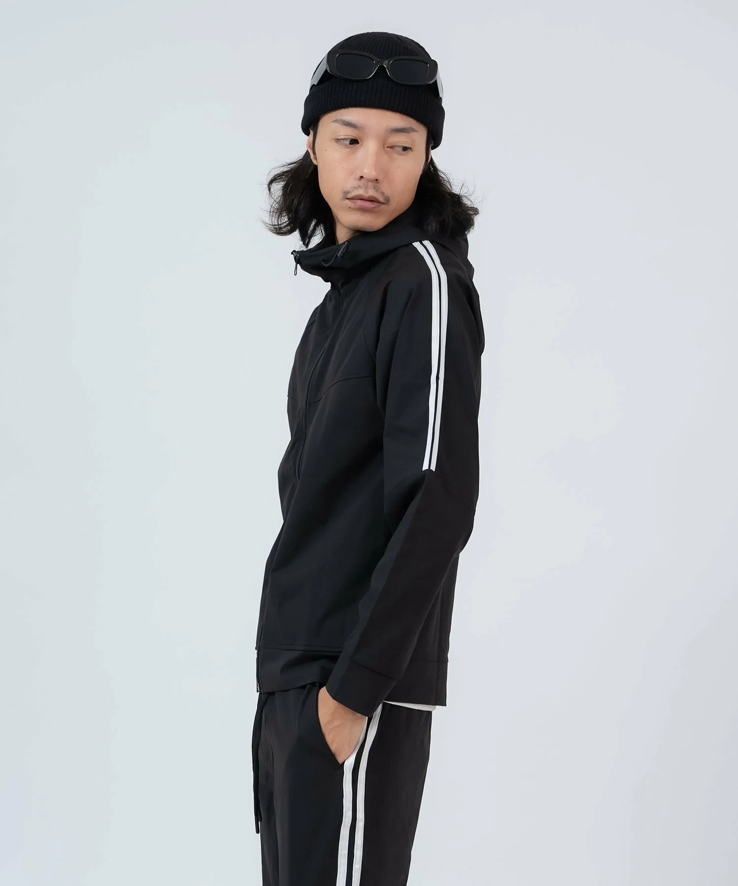 ●Верх – толстовка на молнии, а брюки имеют свободный силуэт спортивных брюк.