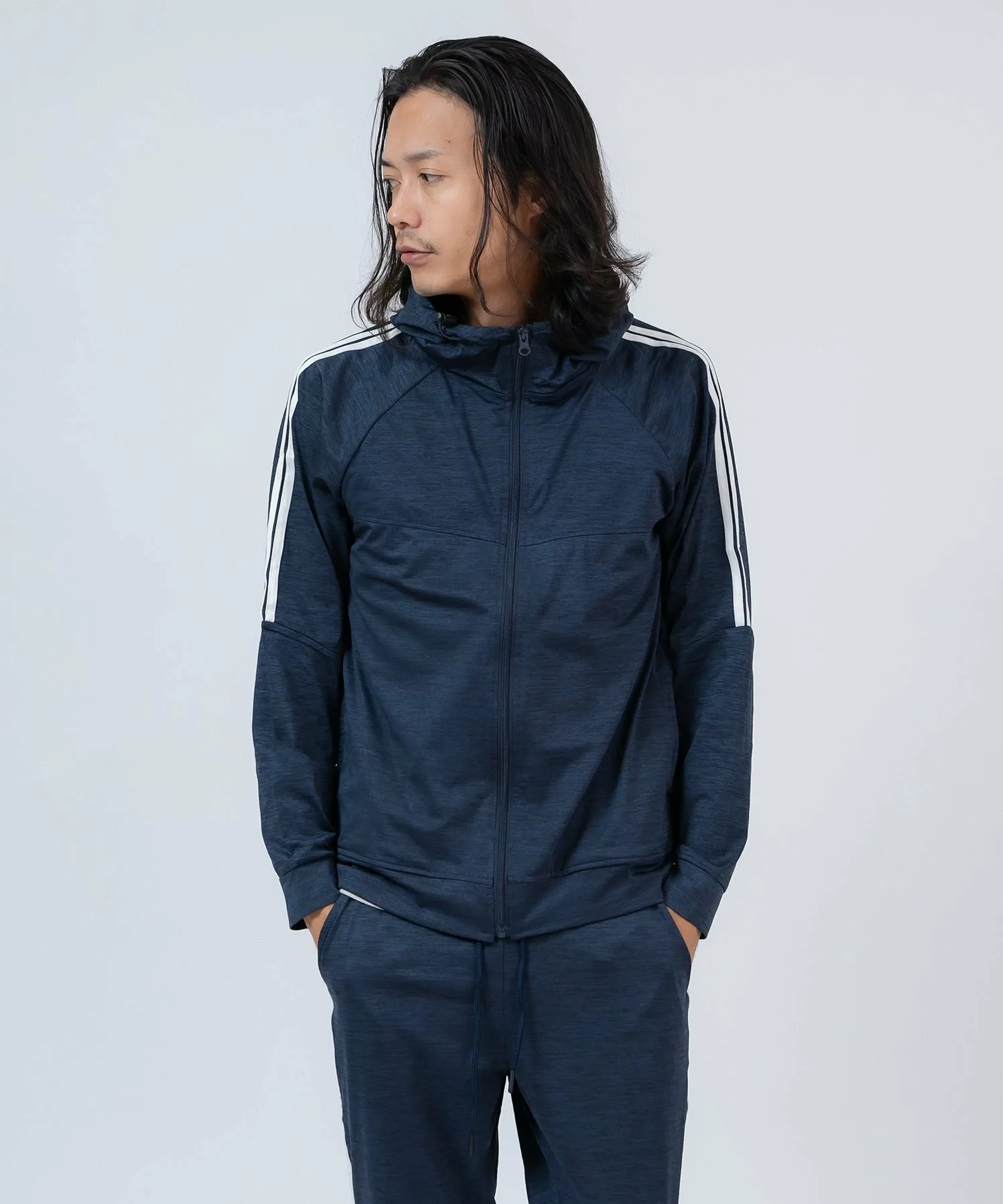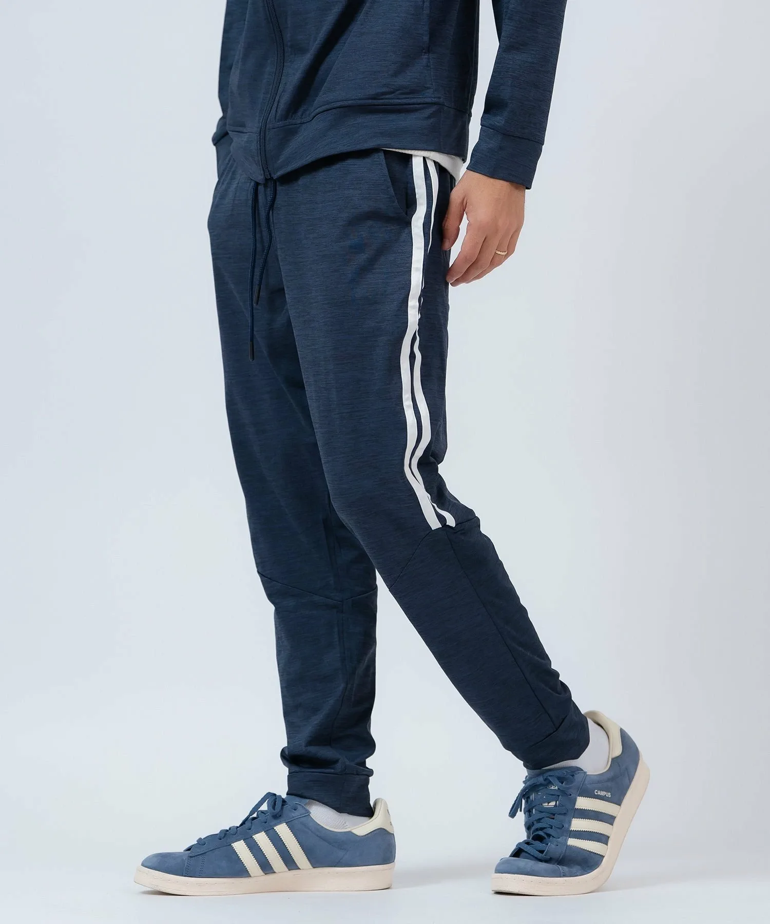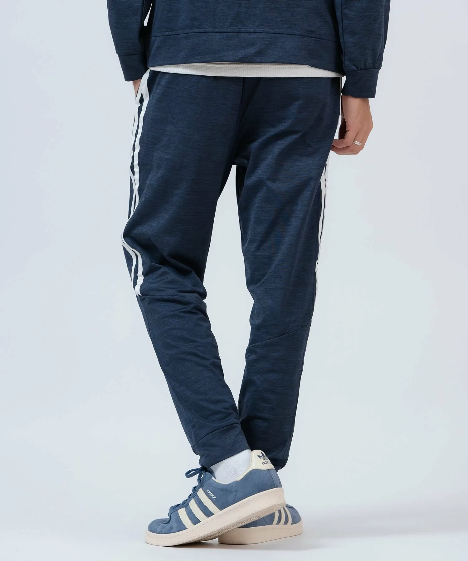 ●Комплект из верха и низа, состоящий из толстовки на молнии с модными боковыми полосками и спортивных брюк с ребристым низом для аккуратного вида.
