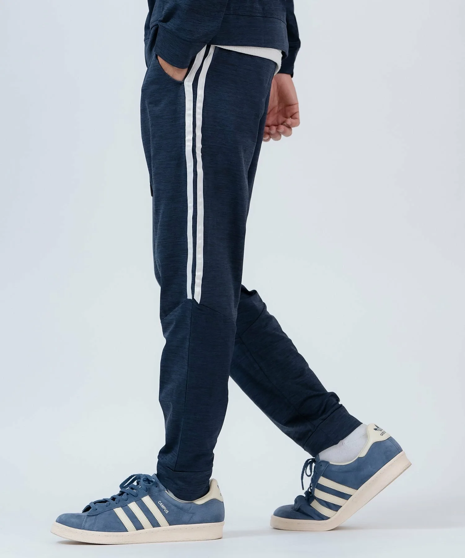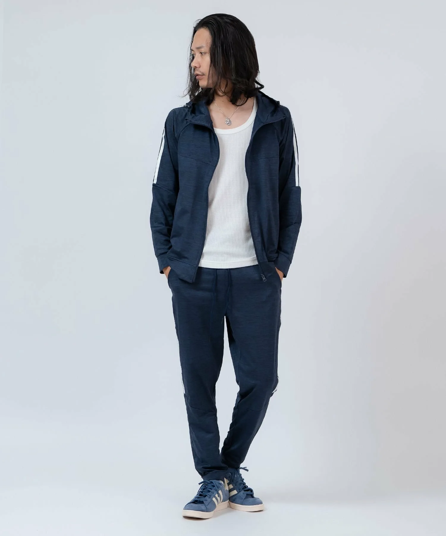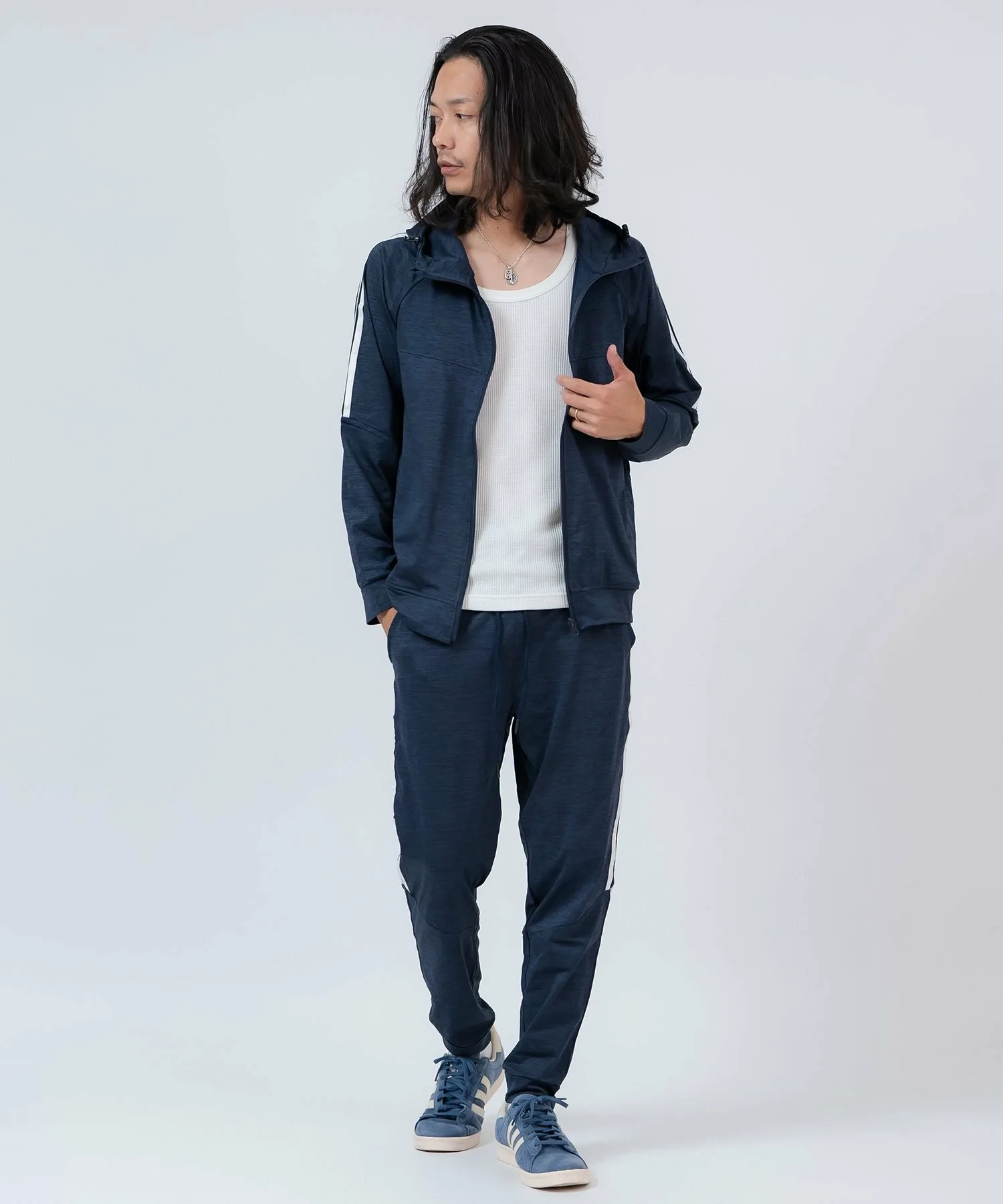 ●Верх – толстовка на молнии, а брюки имеют свободный силуэт спортивных брюк.