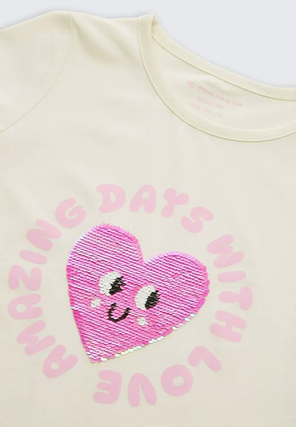 Футболка с принтом mit wendepailletten Tom Tailor, Wool White