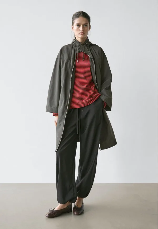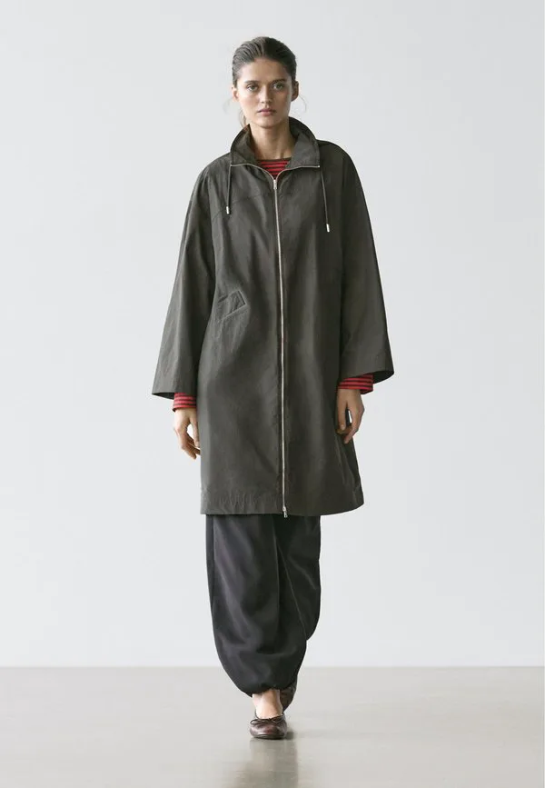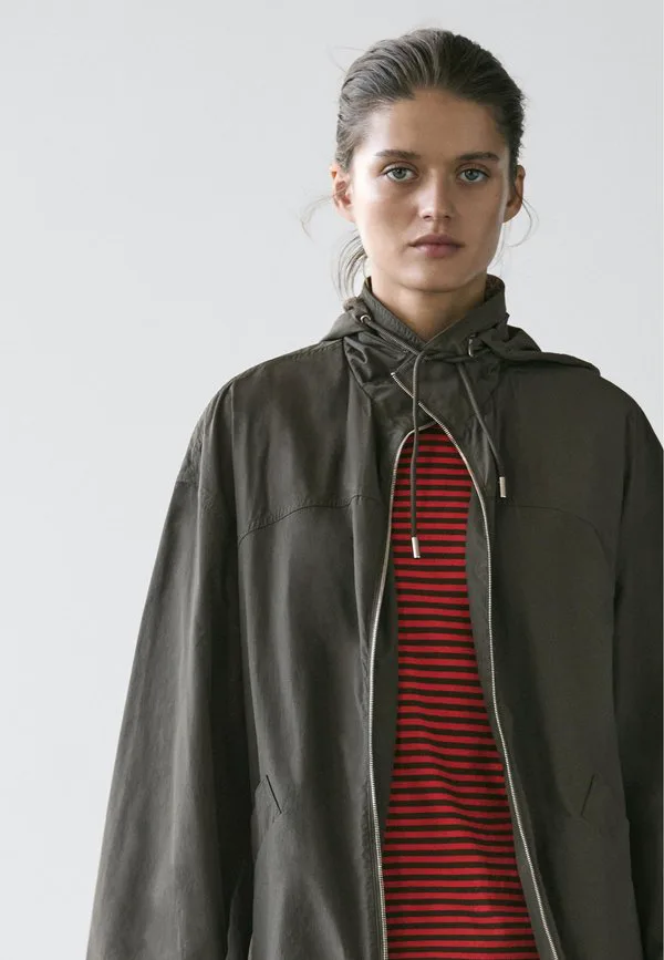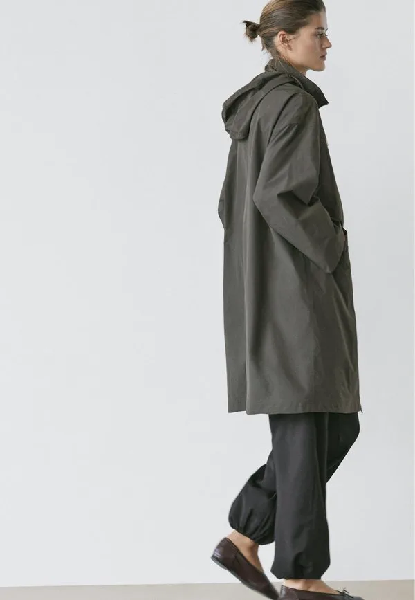 Тренч из технической ткани с капюшоном Massimo Dutti, Green